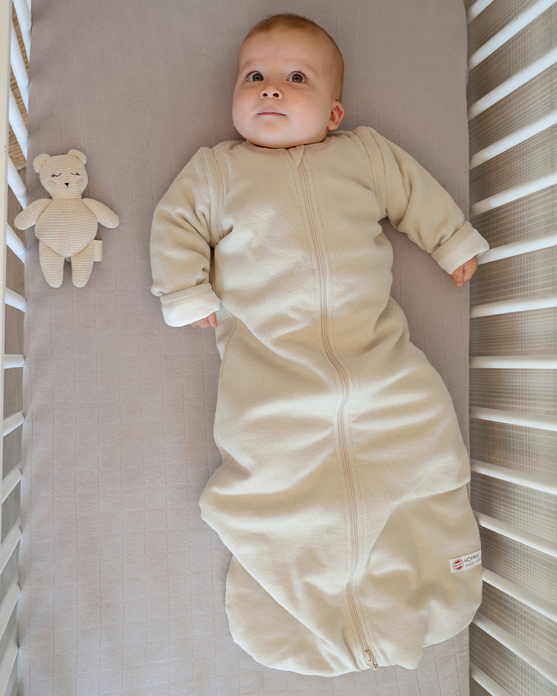 Tento zimní spací pytel je vyroben z měkké žebrované bavlny a je testován a certifikován Oeko-Tex. Spací pytel je podšitý bavlnou a má hodnotu TOG 3,3, díky čemuž je teplý a vhodný na podzim a zimu. Vaše dítě nemůže do spacího pytle vklouznout, protože spací pytel velmi dobře sedí. Novorozenecká velikost 50/62 poskytuje rukavice proti poškrábání.