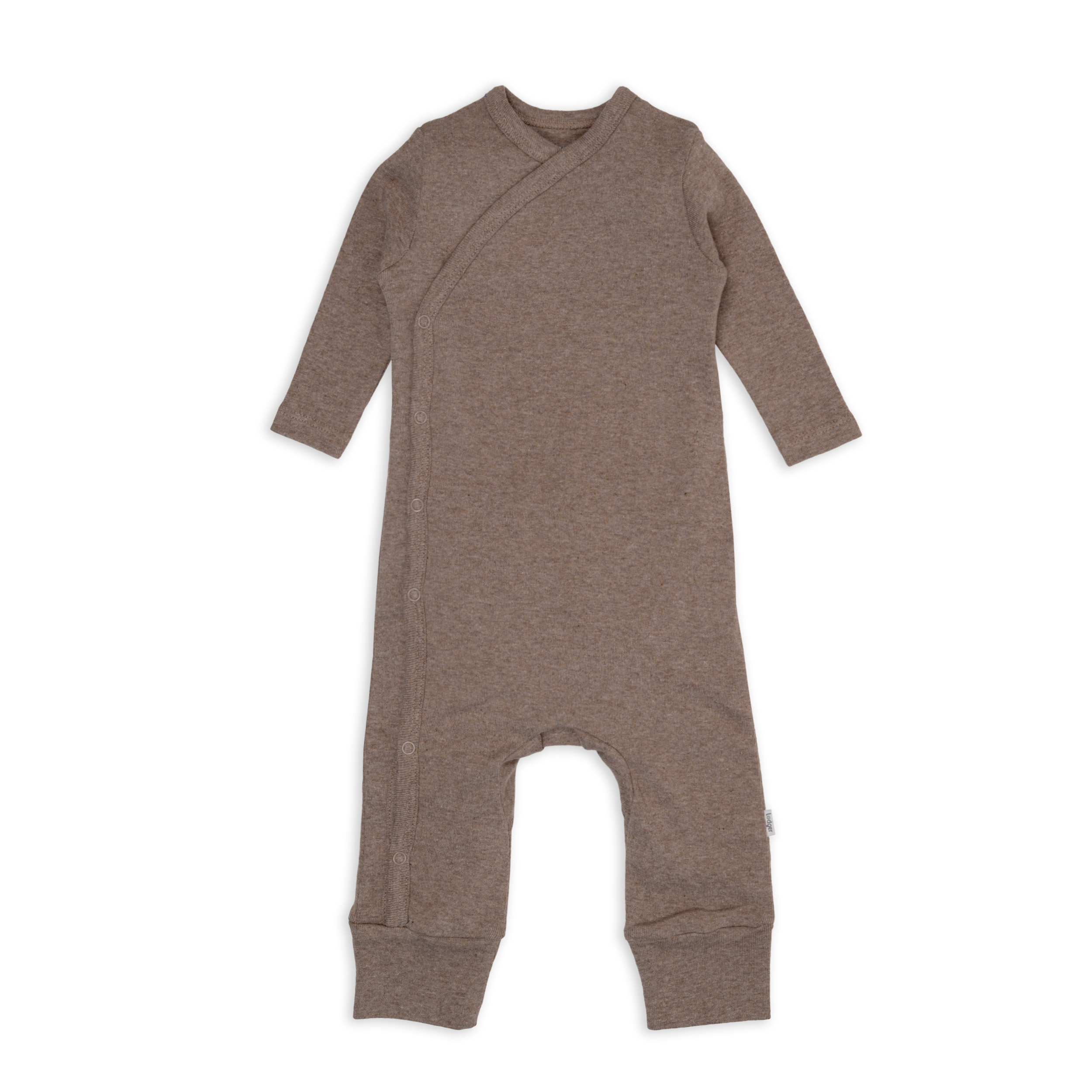Oblékněte své miminko snadno s overalem Lodger Jumper Melange. Tento hedvábně jemný overal se neobléká přes hlavu, ale jednoduše se zavine kolem těla miminka. Stačí zapnout pár knoflíků a vaše dítě je oblečené. U nejmenších velikostí, 50, jsou overaly s nožičkami. Díky těmto připojeným ponožkám vaše novorozené miminko nikdy neprochladne na nohy. Pokud je vaše dítě větší, lze u velikostí 56, 62 a 68 spodní část overalu ohrnout pro extra dlouhé nohavice. Overal je vyroben ze 100% organické pletené bavlny, což ho činí velmi jemným a pružným. Díky tomu overal dobře sedí na těle miminka a je pohodlný. Melange příze použité v této kolekci jsou barveny speciální technikou. Díky tomu si látka uchovává svou barvu a kvalitu po dlouhou dobu, i při častém praní.