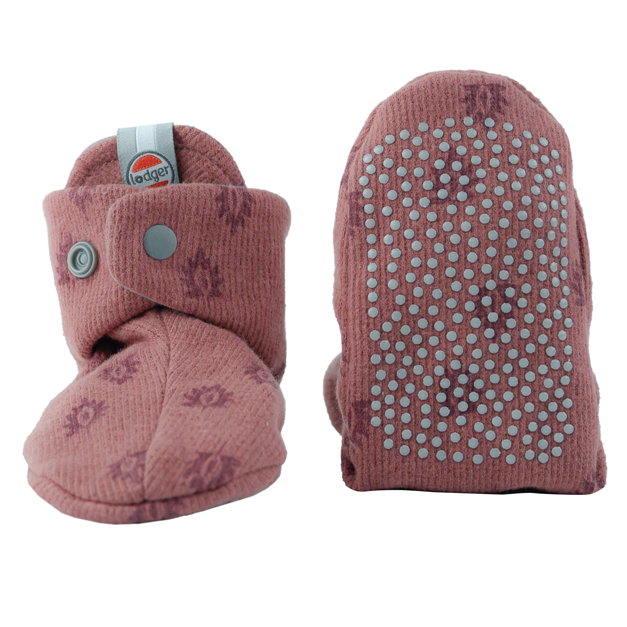Tyto dětské capáčky jsou ušité ze 100% bavlny s certifikátem Öko-Tex 'důvěra k textiliím'. Díky patentkám se snadno nazouvají a zůstávají na svém místě. Největší velikost (6 - 12 měsíců) má protiskluzovou úpravu, která je ideální při lezení nebo pokusech o první krůčky.