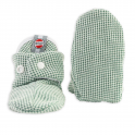 Die Hausschuhe aus Baumwolle haben einen Druckknopfverschluss an den Knöcheln. So sind die Babyschuhe leicht anziehen und der clevere Verschluss zusammen mit dem Gummizug an der Ferse verhindert, dass Ihr Kind die Schuhe schnell ausziehen kann. Für Neugeborene sind die Babypantoffeln ideal, da sie weich und flexibel sind. Natürlich haben wir auch an die Kinder gedacht, die bereits krabbeln oder laufen können. Deshalb sind die größten Krabbelschuhe (6 - 12 Monate) mit rutschfester Sohle ausgestattet.