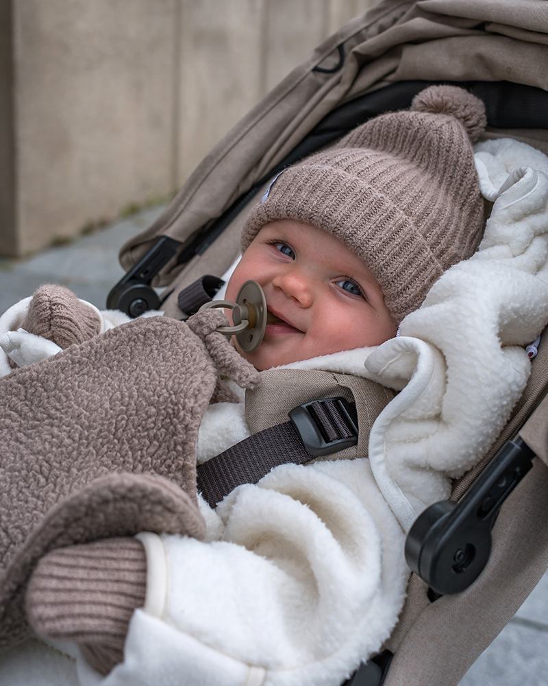 Give your baby a soft friend to cuddle or fall asleep with and give them the Lodger Cuddle toy Teddy bunny. Thanks to the Teddy Fleece fabric, the cuddle toy is wonderfully soft. Attach a soft toy or pacifier to the two cords at the bottom. The head of the bunny is filled, so your child can easily grab the bunny. Thanks to our self-developed materials, the cuddle toy stays soft and in form, even after each wash. Our Teddy items are water-repellent, so the cuddle toy won't get wet in light rain.