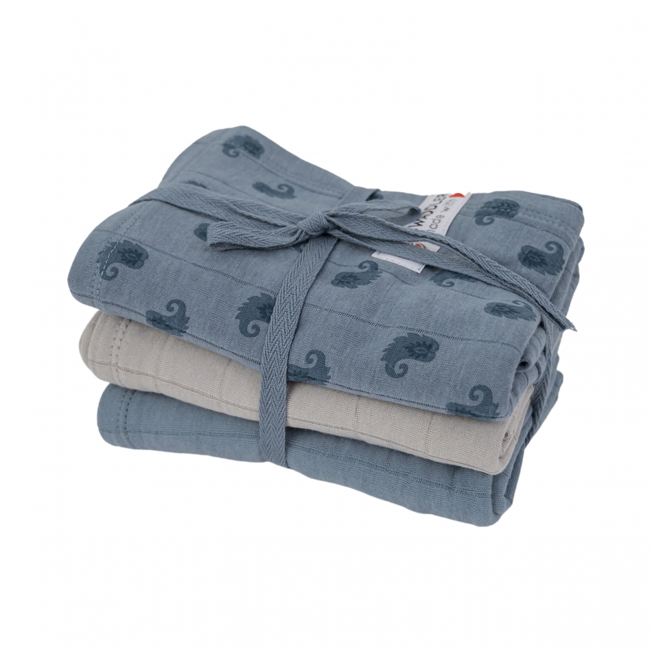 Diese Musselintücher im 3er-Pack sind atmungsaktive Baumwolltücher, die Sie für alles verwenden können. Das gestrickte Baumwollgewebe ist dehnbar, luftig und saugfähig. Sie werden keine weicheren Musselintücher finden als die von Lodger. Unsere hydrophilen Musselintücher tragen das Gütezeichen von Oeko-Tex "Textiles Vertrauen". Verwenden Sie die kleinen hydrophilen Musselintücher als Spucktücher, Schnuller Tuch oder als Schutz. Diese hydrophilen Musselintücher im 3er-Pack werden in einer hübschen Geschenkbox geliefert und eignen sich sehr gut als Mutterschaftsgeschenk.