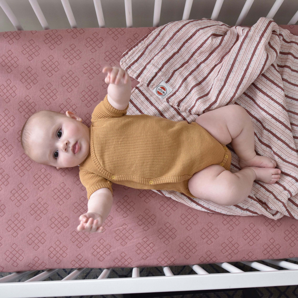 Praktisches Spannbetttuch für Wiege oder Kinderbett. Dank der gestrickten Baumwolle sind unsere Spannbetttücher dehnbar und ermöglicht es Ihnen das Babybett leicht einzubetten. Das Spannbetttuch rutscht durch die breiten Ecken und den Gummizug rundherum nicht von der Matratze. Kombinieren Sie die Slumber Empire Spannbetttücher mit Decken, Schlafsäcken und Wickelauflagenbezüge aus unserer Kollektion.