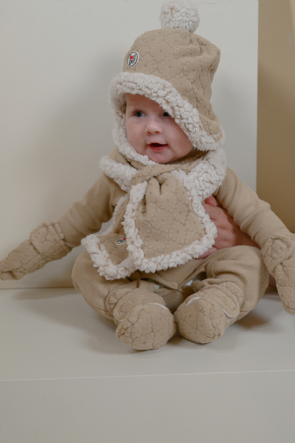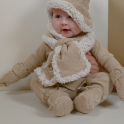 Unser Muffler Wickelschal lässt sich gut mit passenden Babymützen, Fäustlingen und Baby-Hausschuhen kombinieren.