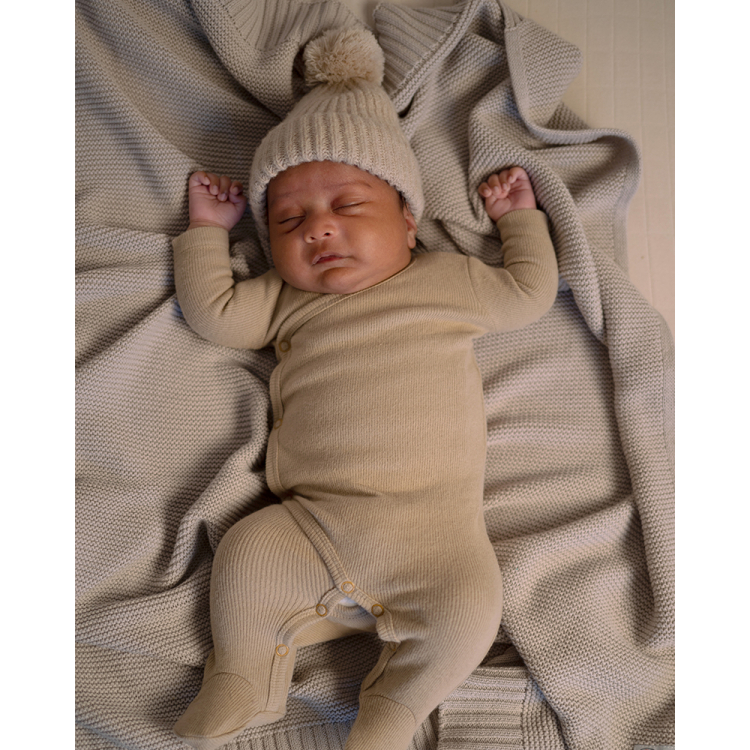 Our OEKO-TEX® certified newborn jumpsuits are made of knitted cotton. Knitted cotton provides an elastic fit that fits well. Convenience is important for newborn babies, that is why our long sleeve baby onesie have snap buttons for easy diaper changes.