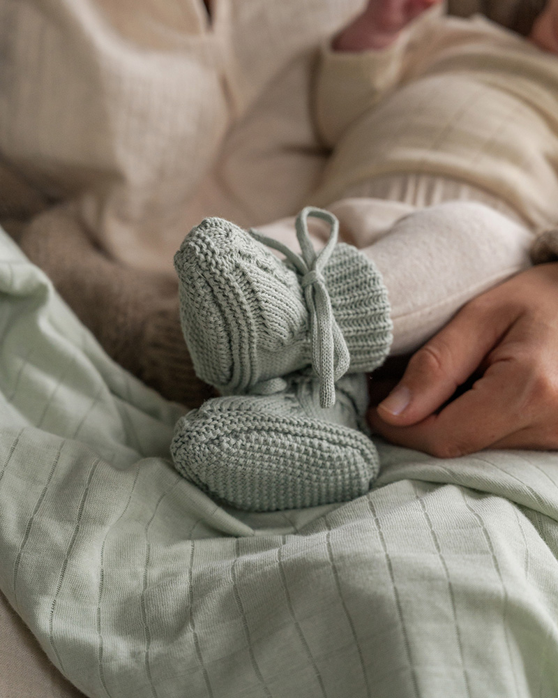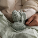 Keep your baby's feet lovely and warm in a stylish way with the Lodger Slipper knitted cable slippers. These baby slippers are made of 100% cotton melange yarn and do not itch on baby's soft skin. You can use these knitted baby slippers right from birth until your baby is about 6 months old. Thanks to the drawstring, the Lodger slipper fits snugly on baby's ankle and won't fall off. Fold up the high cuff to keep your baby's legs extra warm. The melange yarn gives the newborn slippers a stylish speckled look and the cable on top of the slipper is a stylish detail. You can easily combine the Lodger Slipper slippers with other items in other colours from the Lodger range, as they have nice neutral colours.
