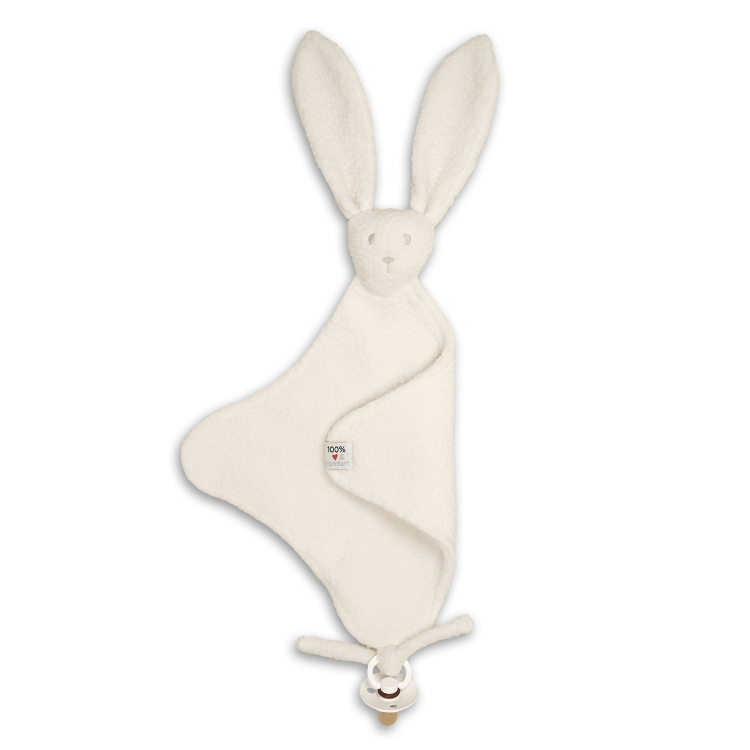 Give your baby a soft friend to cuddle or fall asleep with and give them the Lodger Cuddle toy Teddy bunny. Thanks to the Teddy Fleece fabric, the cuddle toy is wonderfully soft. Attach a soft toy or pacifier to the two cords at the bottom. The head of the bunny is filled, so your child can easily grab the bunny. Thanks to our self-developed materials, the cuddle toy stays soft and in form, even after each wash. Our Teddy items are water-repellent, so the cuddle toy won't get wet in light rain.