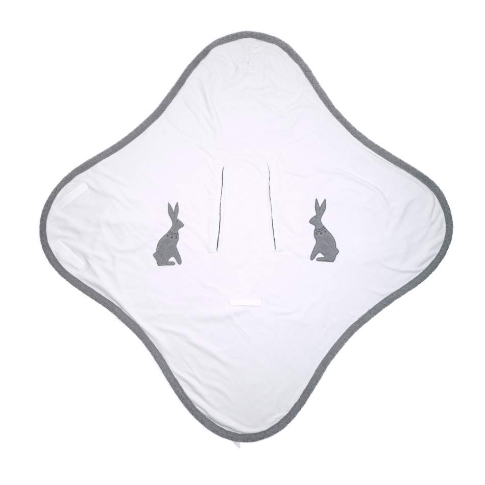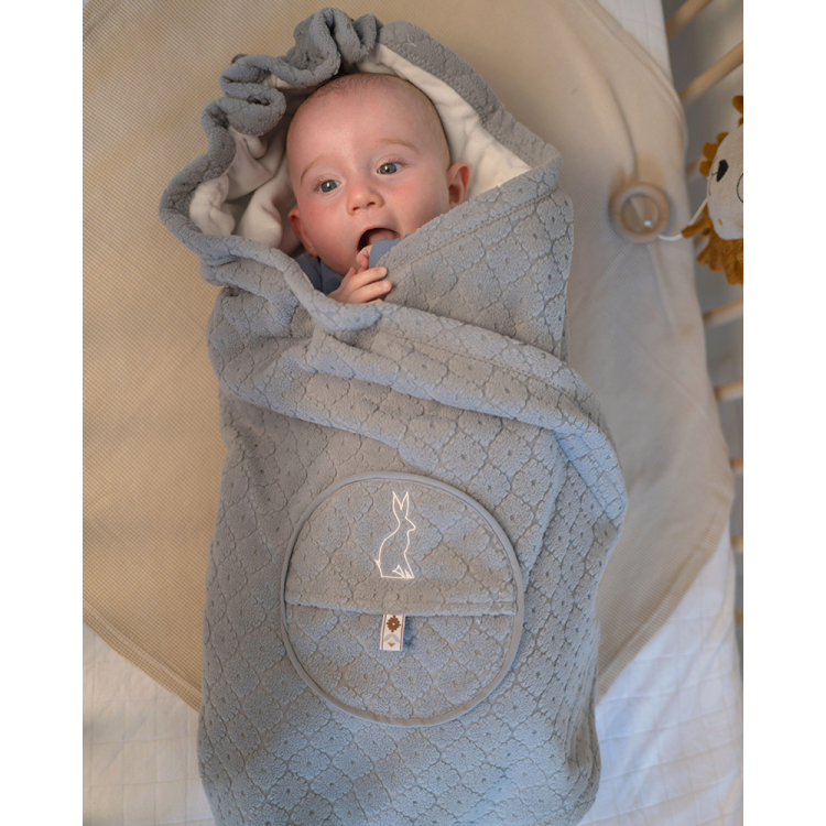 Das Wrapper 3-in-1-Wickeltuch für Babys ist ideal zum Einwickeln Ihres Neugeborenen. Dank der praktischen Öffnung eignet sich die Wickeldecke für den Maxi Cosi und andere Kindersitze mit einem 3- oder 5-Punkt-Gurt. Verwenden Sie den Wrapper in der Kinderwagenschale als praktische Decke, die Ihr Baby nicht abstreifen kann, aber warm hält. Das Baby-Wickeltuch ist mit einem Klettverschluss versehen, der es sicher an seinem Platz hält. Für zusätzlichen Komfort und um die Körperwärme zu speichern, können Sie eine Kapuze bilden, indem Sie an der Kordel oben ziehen. Falten Sie das Wickeltuch auseinander und Sie haben im Handumdrehen eine Spiel- oder Krabbeldecke.
