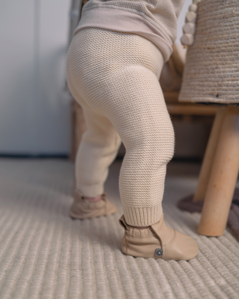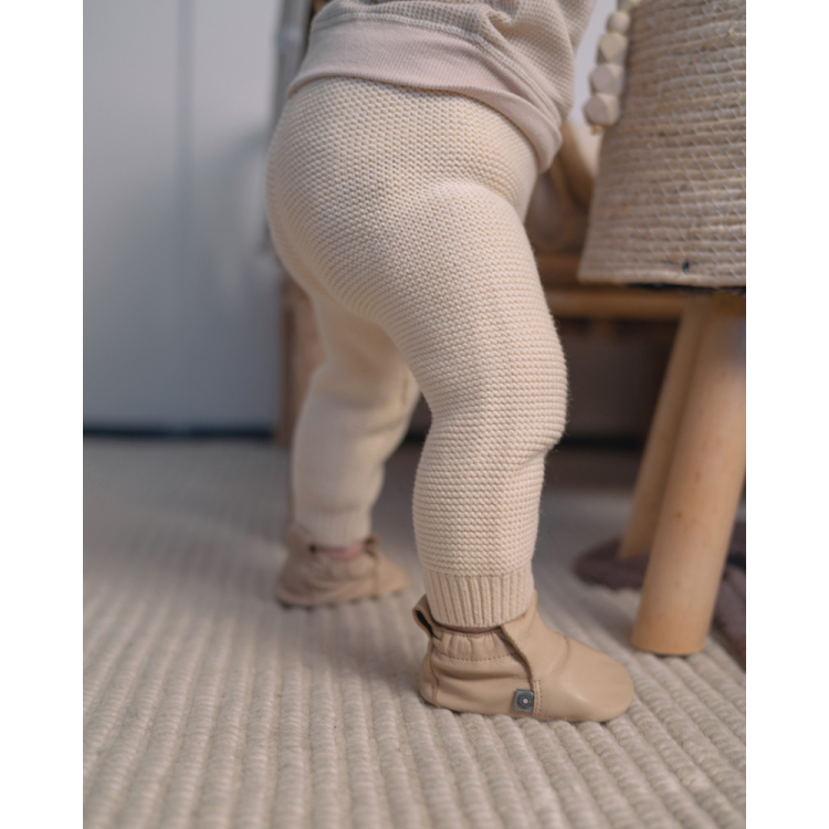 Dank des elastischen Einstiegs und der praktischen Schlaufe auf der Rückseite kann Ihr Baby die Hausschuhe leicht an- und ausziehen. Die Einlegesohle sorgt dafür, dass diese ersten Lauflernschuhe ihre Form beibehalten. Diese Lederpantoffeln halten die Füßchen Ihres Babys warm und geschützt, ob zu Hause oder draußen im Kinderwagen, im Tragetuch oder auf dem Fahrrad.
