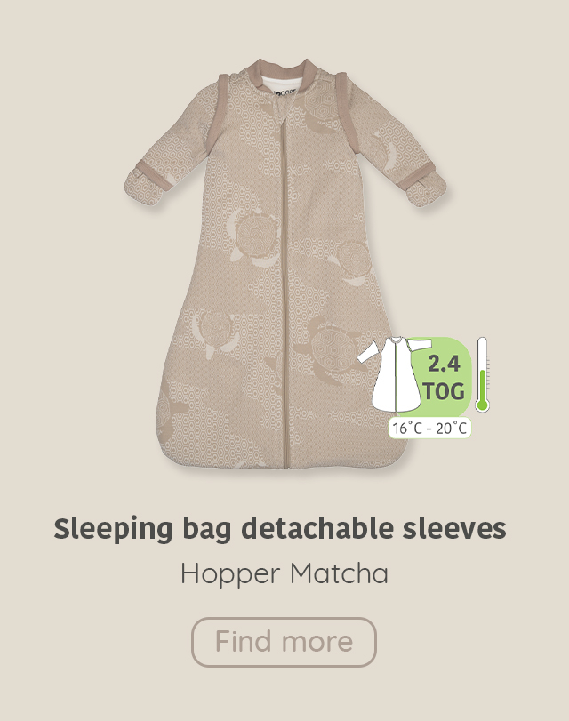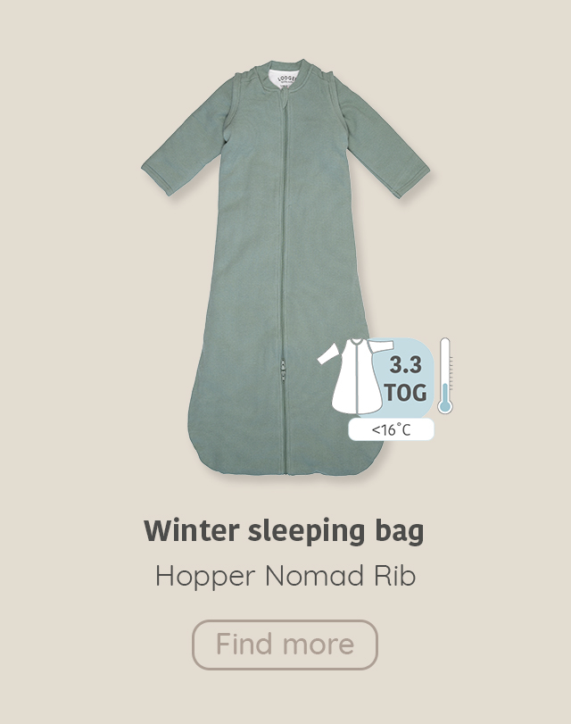 Lodger Hopper baby sleeping bags ensure your baby sleeps comfortably through the night. We have a baby sleeping bag for every time and season, from newborn sleeping bags to winter and summer sleeping bags. Or check out our swaddling bags for newborns, 4 season sleeping bags, or breathable sleeping bag. The Lodger baby sleeping bags combine well with one of our baby pajamas, baby blankets, or fitted sheets.