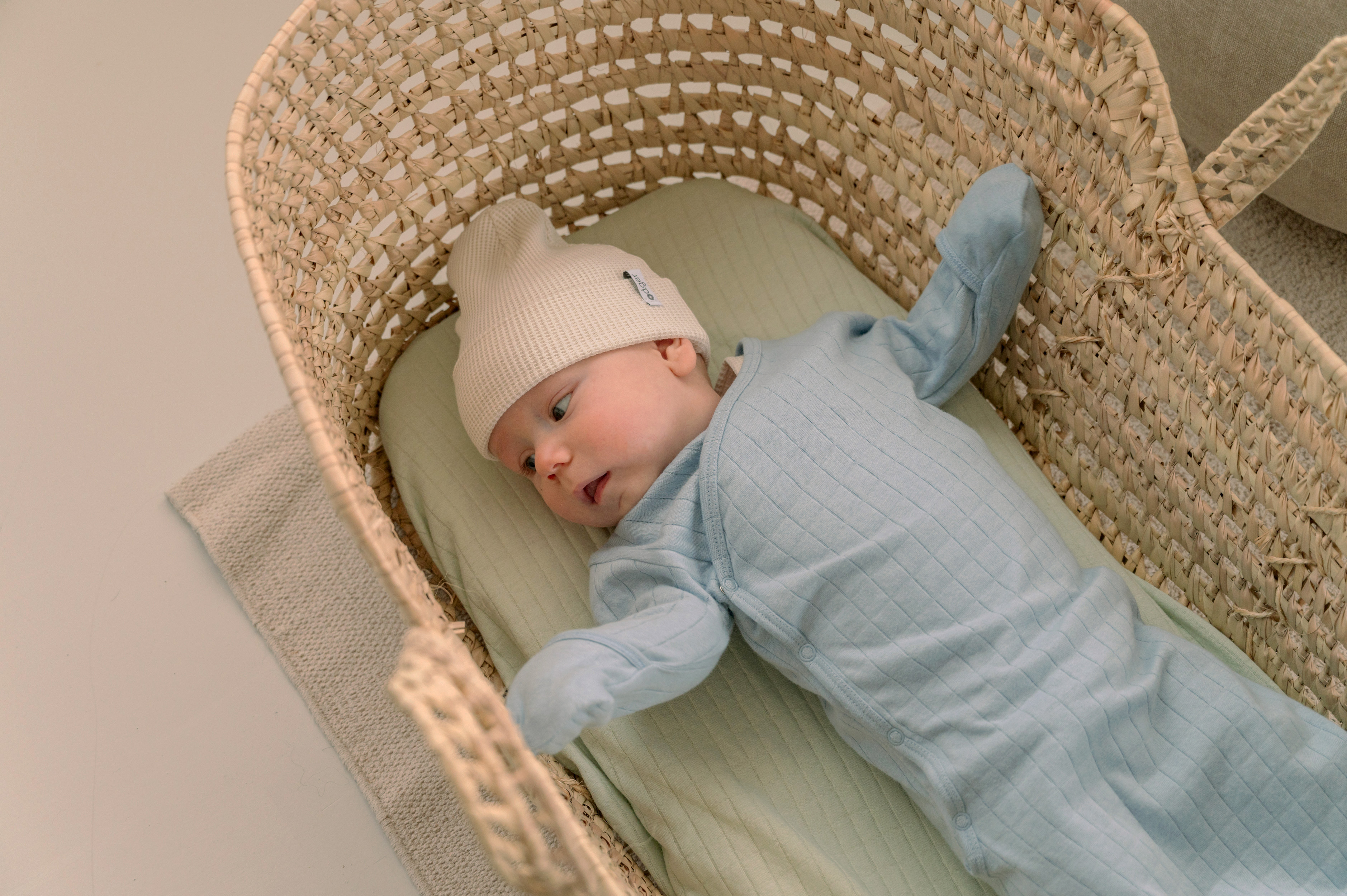 Since a blanket can be too warm on hot spring days, you can use a muslin cloth or swaddle as a lightweight cover instead. Muslin cloths are made from breathable cotton, making them light, airy, and absorbent. Plus, they dry quickly. Did you know that muslin cloths can be used in many different ways? Read more about swaddles here!
