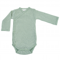 Our baby bodysuits long sleeves have a handy wrap around with snap buttons. Perfect to dress newborns. The bodies are made of 100% cotton and are Oeko-Tex qualified. These wrap baby bodysuits have extra room between the legs for the diaper.