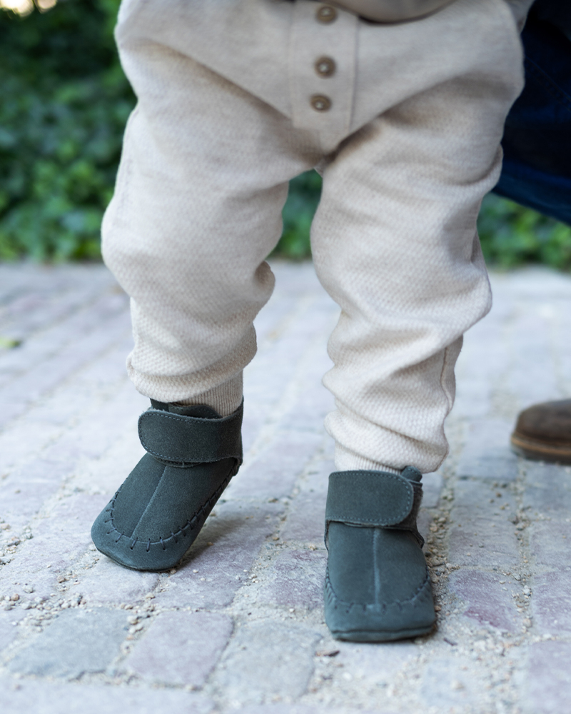 The Mocassins from Lodger are leather baby shoes that doesn't go out and truly stay on the feet. The velcro closing makes sure that the slippers are tight on the feet. These baby shoes are made of Suede leather and features a soft fleece lining. The leather baby shoes are tested and got the Oeko-Tex certificate.