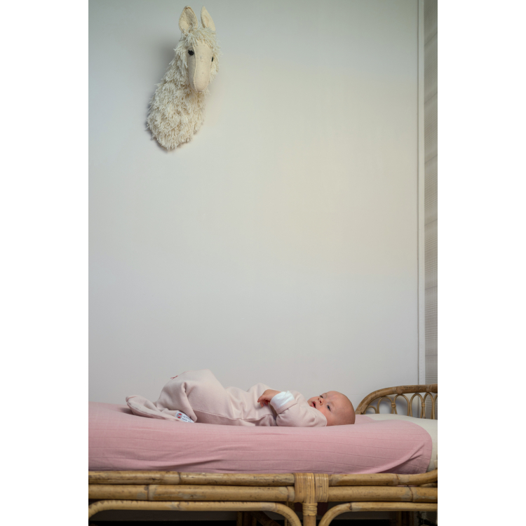 This sleeping bag baby is made of soft rib cotton and is tested and certified by Oeko-Tex. The sleeping bag is lined with cotton and got a TOG value of 3.3, which makes it warm and comfy. Your baby cannot fall into the sleeping bag baby because it fits very well. Newborn size 50/62 provides anti scratch mittens.