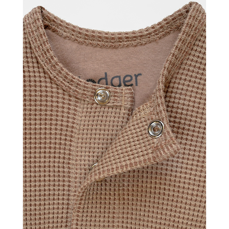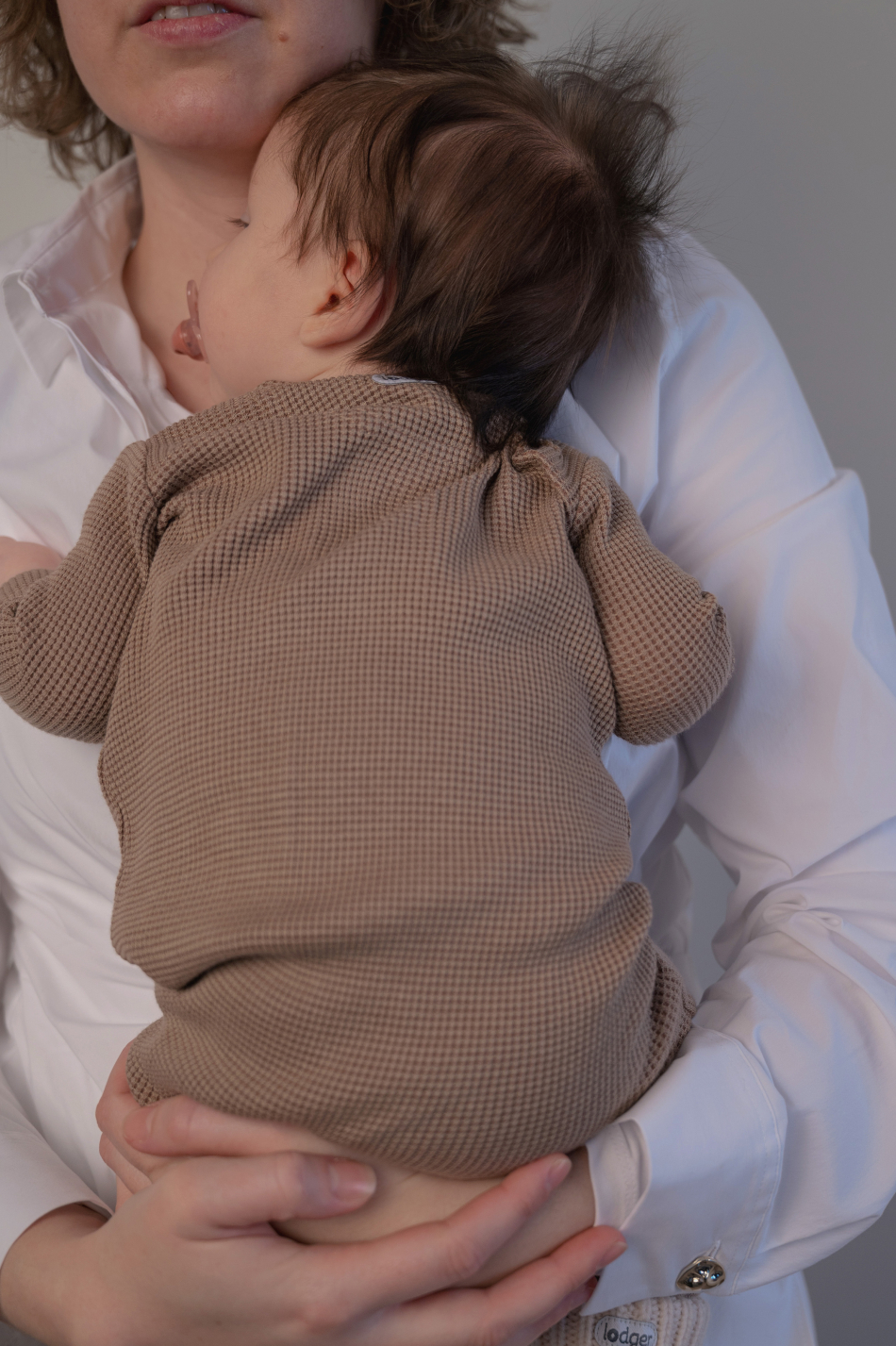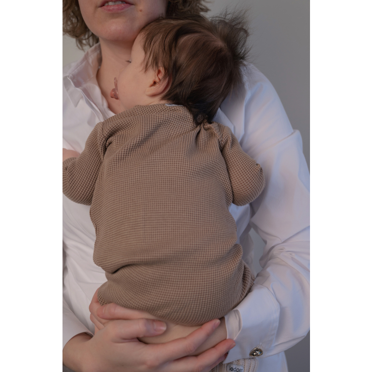 Our OEKO-TEX® certified newborn jumpsuits are made of knitted cotton. Knitted cotton provides an elastic fit that fits well. Convenience is important for newborn babies, that is why our long sleeve baby onesie have snap buttons for easy diaper changes.