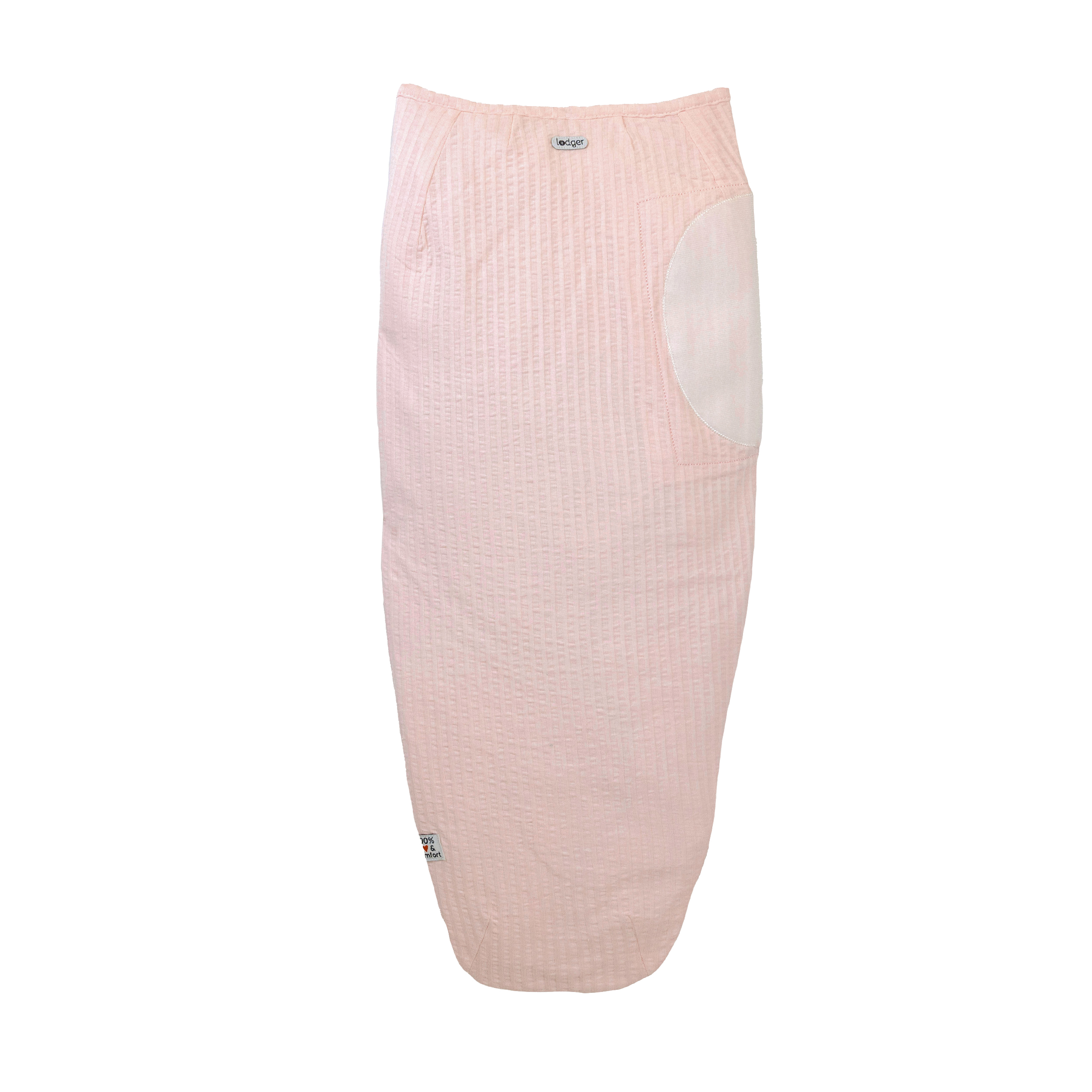 The Lodger Bundler Seersucker swaddle sleeping bag with 0.3 TOG is a wonderfully soft and breathable swaddle blanket. Your baby sleeps peacefully when swaddled, as they won’t wake themselves up with their arms. It also makes them feel as secure and snug as they did in the womb. Thanks to the single-layer stretchy cotton, air circulates well through the swaddle sleeping bag, ensuring your baby won't get too hot. The clever design makes swaddling easy, as you simply wrap the swaddle sleeping bag around your baby and secure it with Velcro. The band is made of double-layered cotton, making it extra strong. The soft cotton remains gentle and flexible, even after many washes.
