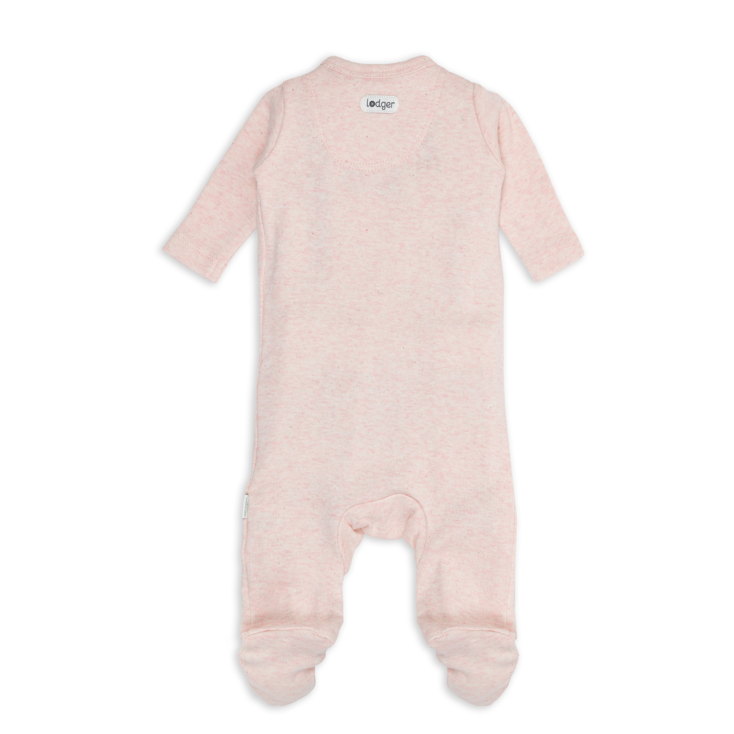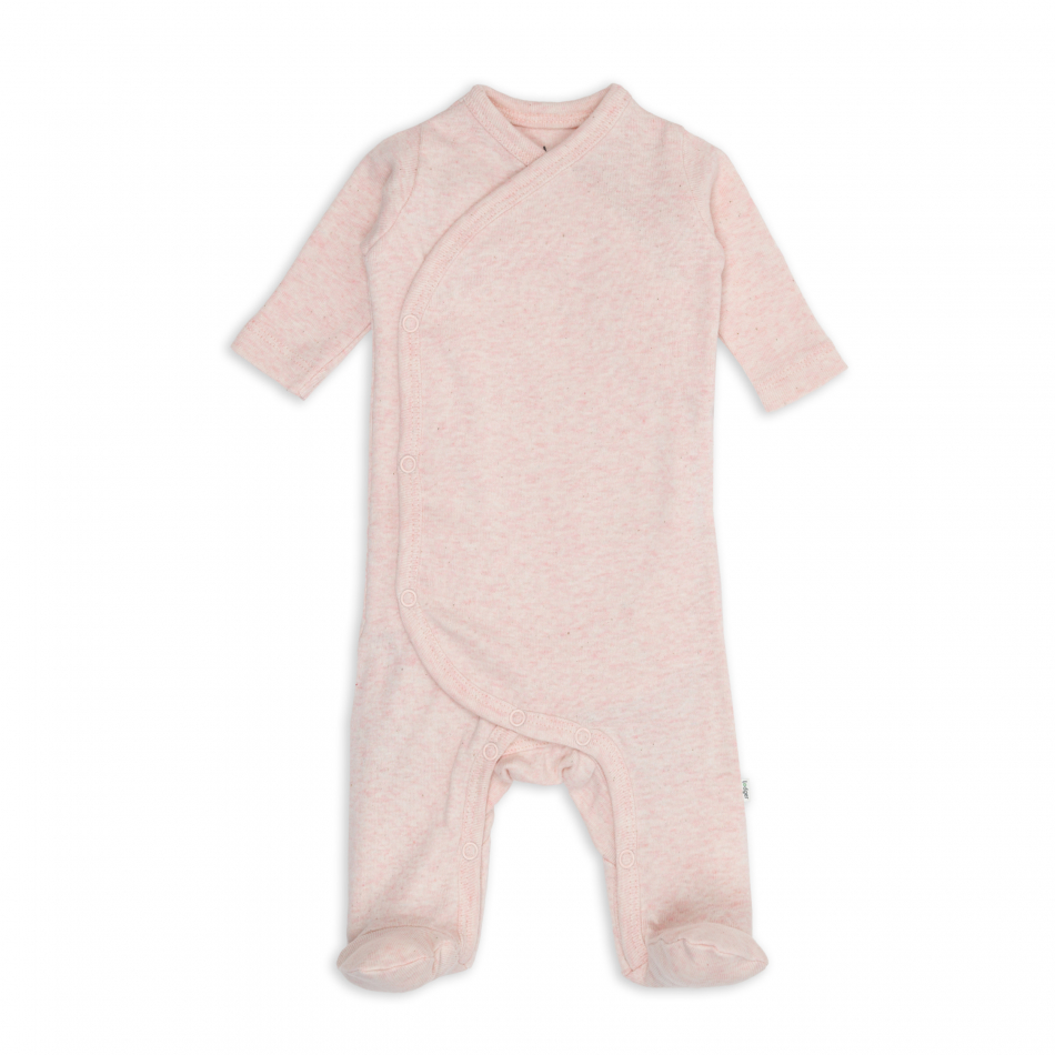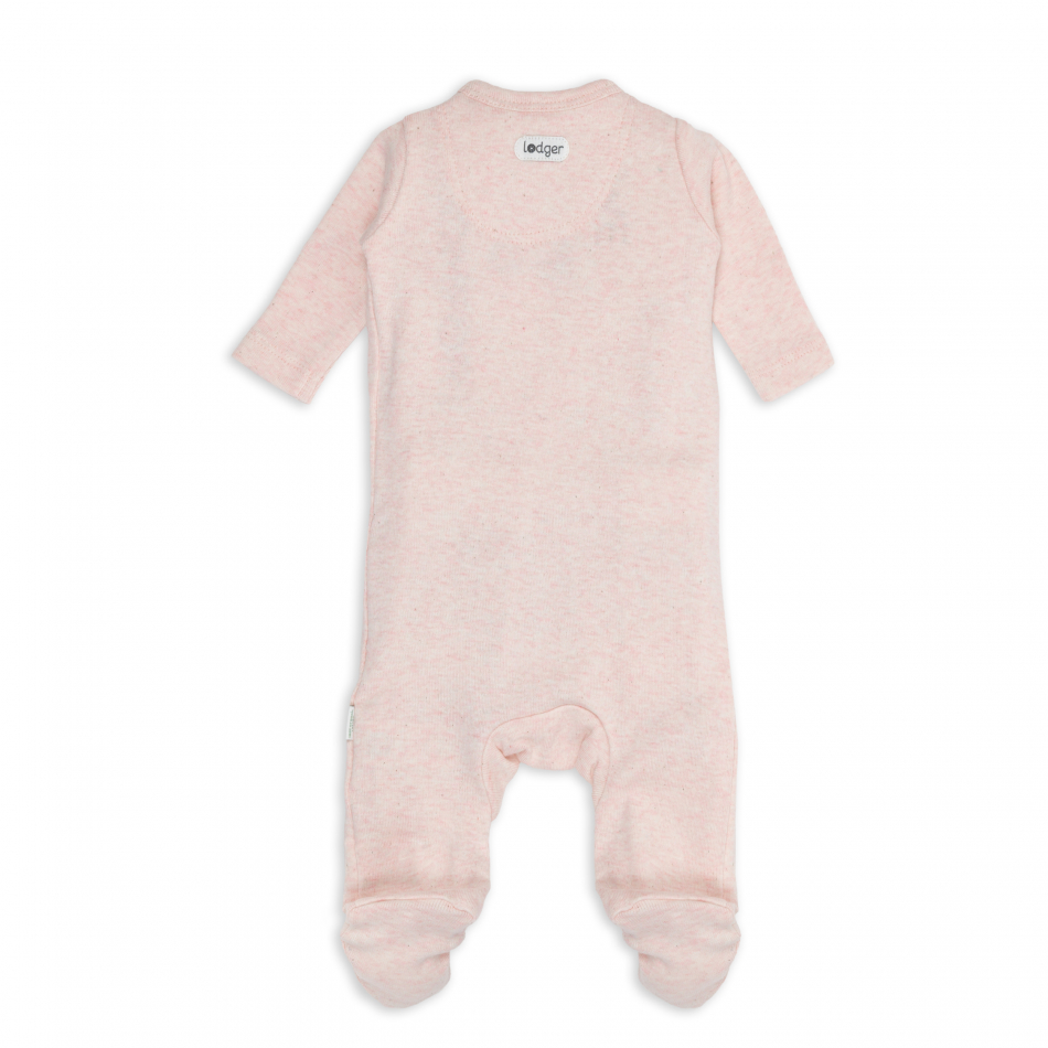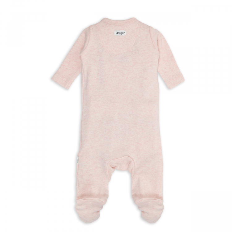 Dress your baby easily with the Lodger Jumper playsuit Melange. This silky soft playsuit is not pulled over your baby's head, but folds around your baby's body. Press a few buttons and your child is dressed. In the smallest size, size 50 there are playsuits with feet. Thanks to these connected socks, your newborn baby will not get cold feet. If your child is bigger, fold the bottom of the size 56, 62 and 68 baby suits for extra long legs. The baby suit is made of 100% organic knitted jersey cotton, which makes it very soft and elastic. As a result, the playsuit fits your baby's body well and is comfortable. The Melange yarns used for this collection are dyed in a special way. As a result, the fabric retains its colour and quality for a long time, even after frequent washing.
