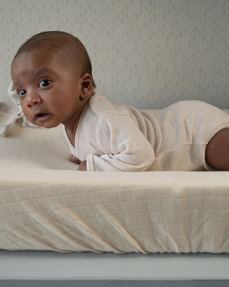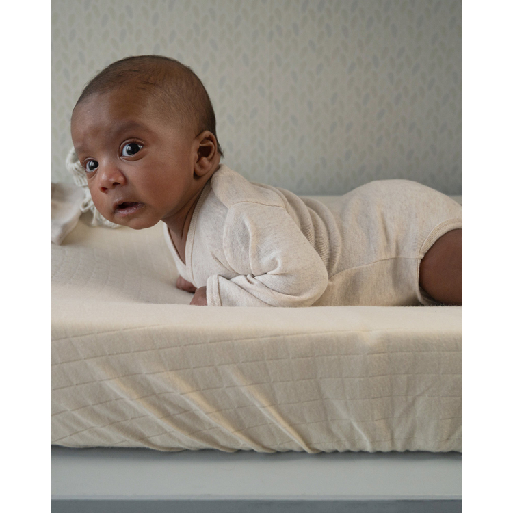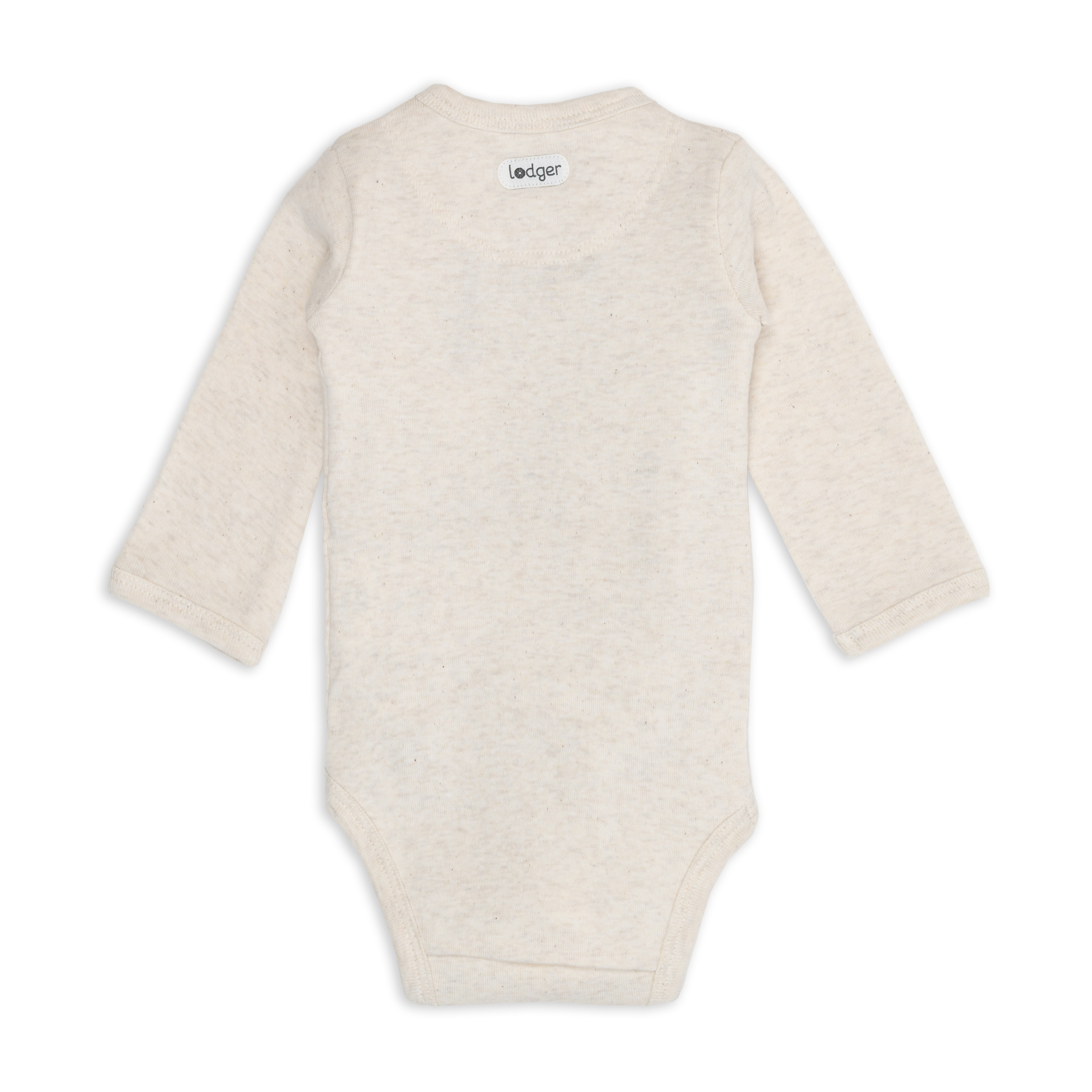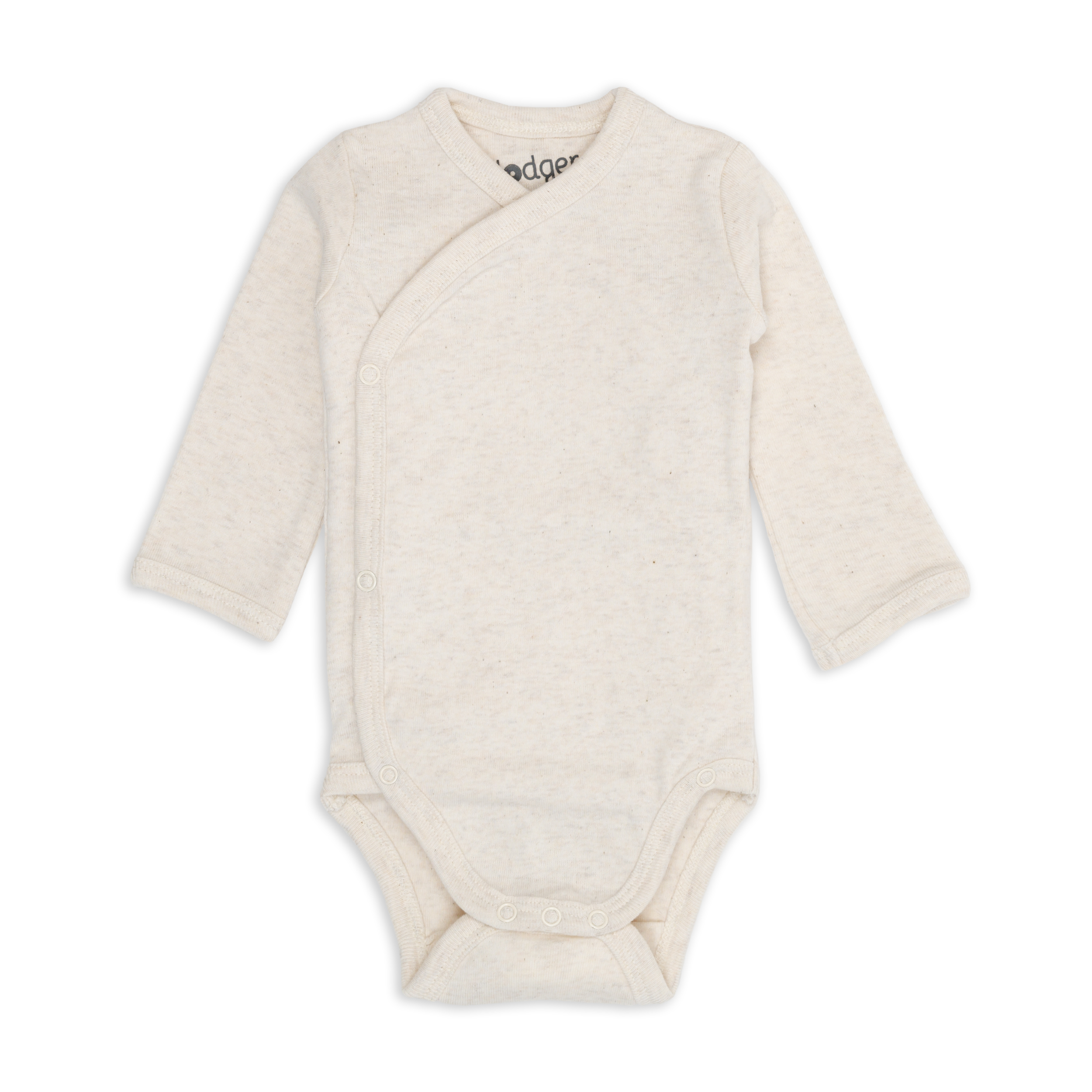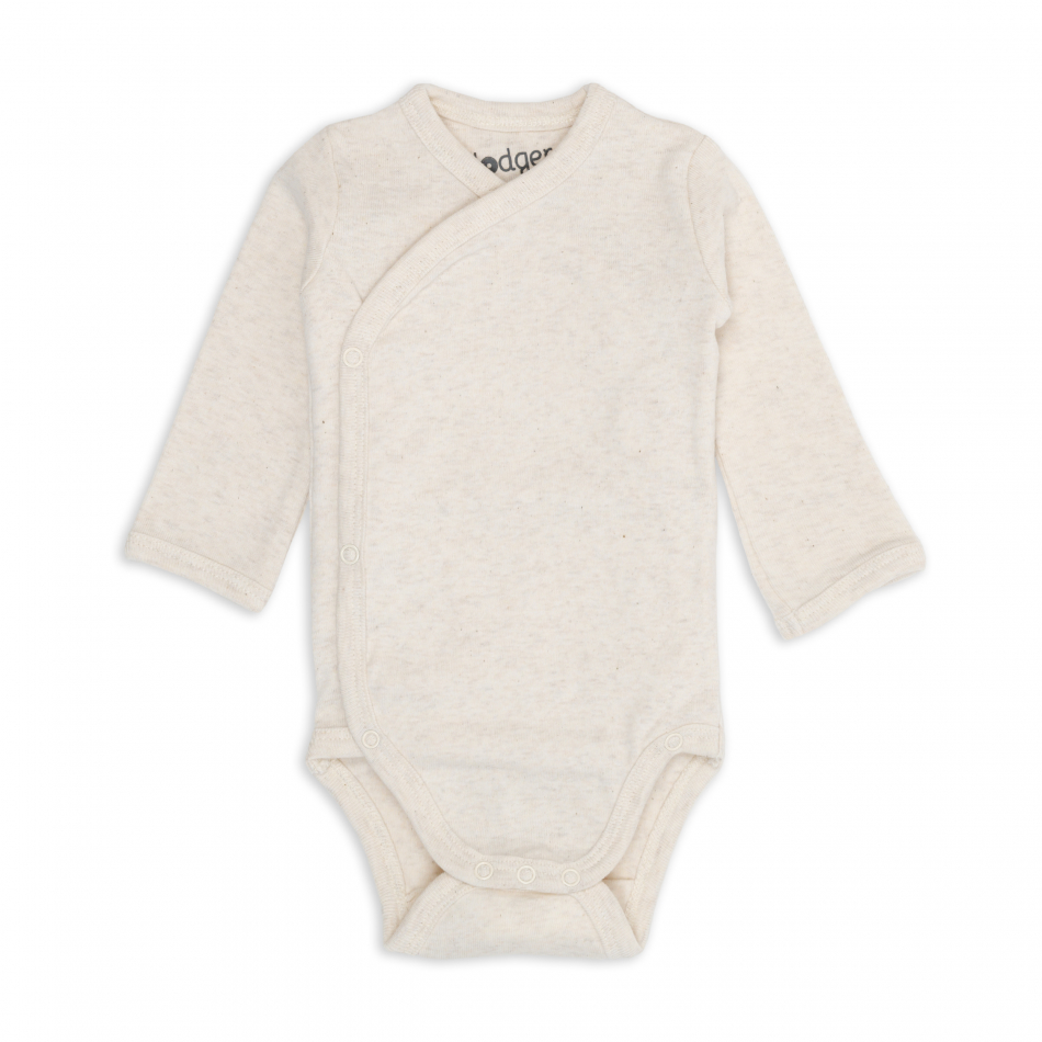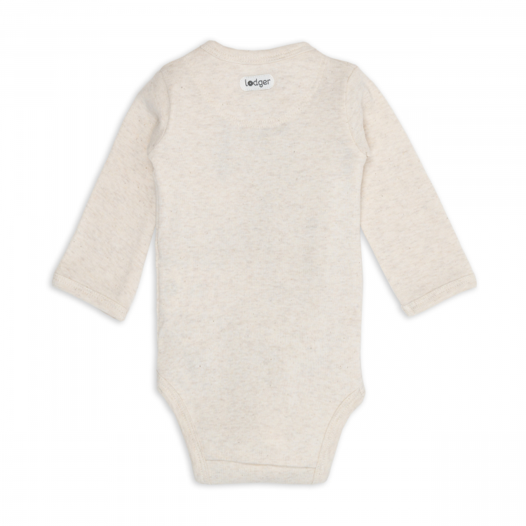 The Lodger Bodysuit Long Sleeves Melange is a very soft base for any baby outfit. As the Melange fabric is knitted jersey, it feels silky soft and fits seamlessly to your baby's skin. The 100% organic cotton is breathable and moisture-absorbent, so your baby won't be too hot in these long-sleeve bodysuits any time soon. You dress your baby easily, as this is a wrap-over bodysuit long sleeve. That means you don't have to pull these bodysuits over your baby's head. Thanks to a new labelling technique, there is no longer an itchy label on the neck of the bodysuit. Thanks to elastic folds at the bottom, your baby's nappy fits easily inside the bodysuit. These Lodger long-sleeved rompers keep their colour, even after repeated washing at 40 degrees. So they stay beautiful for a long time and last for months.