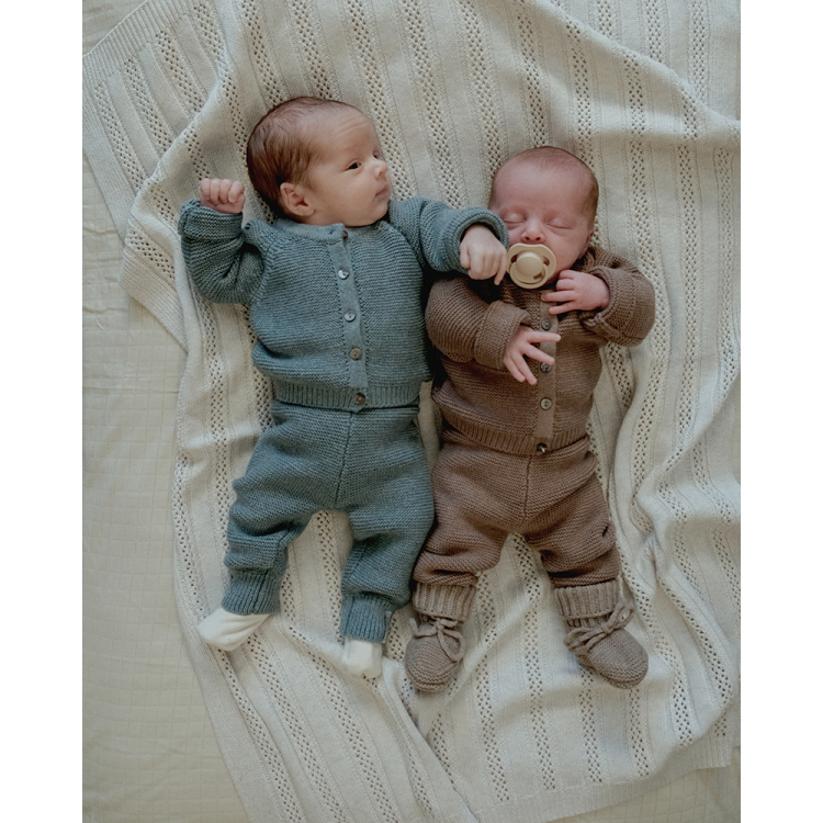 This knitted baby cardigan is designed with comfort and practicality in mind. Thanks to the combination of 70% breathable cotton and 30% soft merino wool, the cardigan feels wonderfully light on the skin, without itching. Ideal for babies with sensitive skin or eczema.