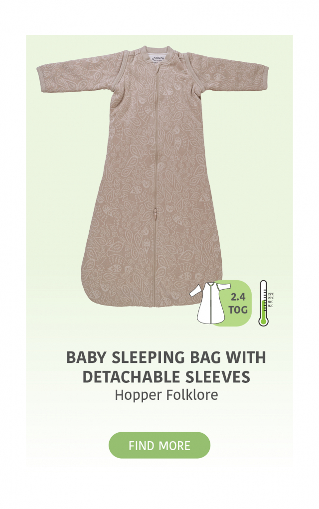 Lodger Hopper baby sleeping bags ensure your baby sleeps comfortably through the night. We have a baby sleeping bag for every time and season, from newborn sleeping bags to winter and summer sleeping bags. Or check out our swaddling bags for newborns, 4 season sleeping bags, or breathable sleeping bag. The Lodger baby sleeping bags combine well with one of our baby pajamas, baby blankets, or fitted sheets.