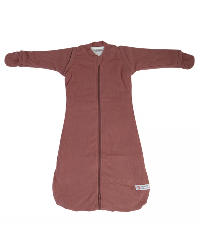 Our newborn sleeping bag with scratch mittens is made of organic muslin cotton and is usable for up to 4 months. Along with the fold-over and tying the bottom of the newborn sleeping bag, it makes it easier to undress and change your newborn. With only 0.3 TOG, this is the ideal summer sleeping bag during warm temperatures.