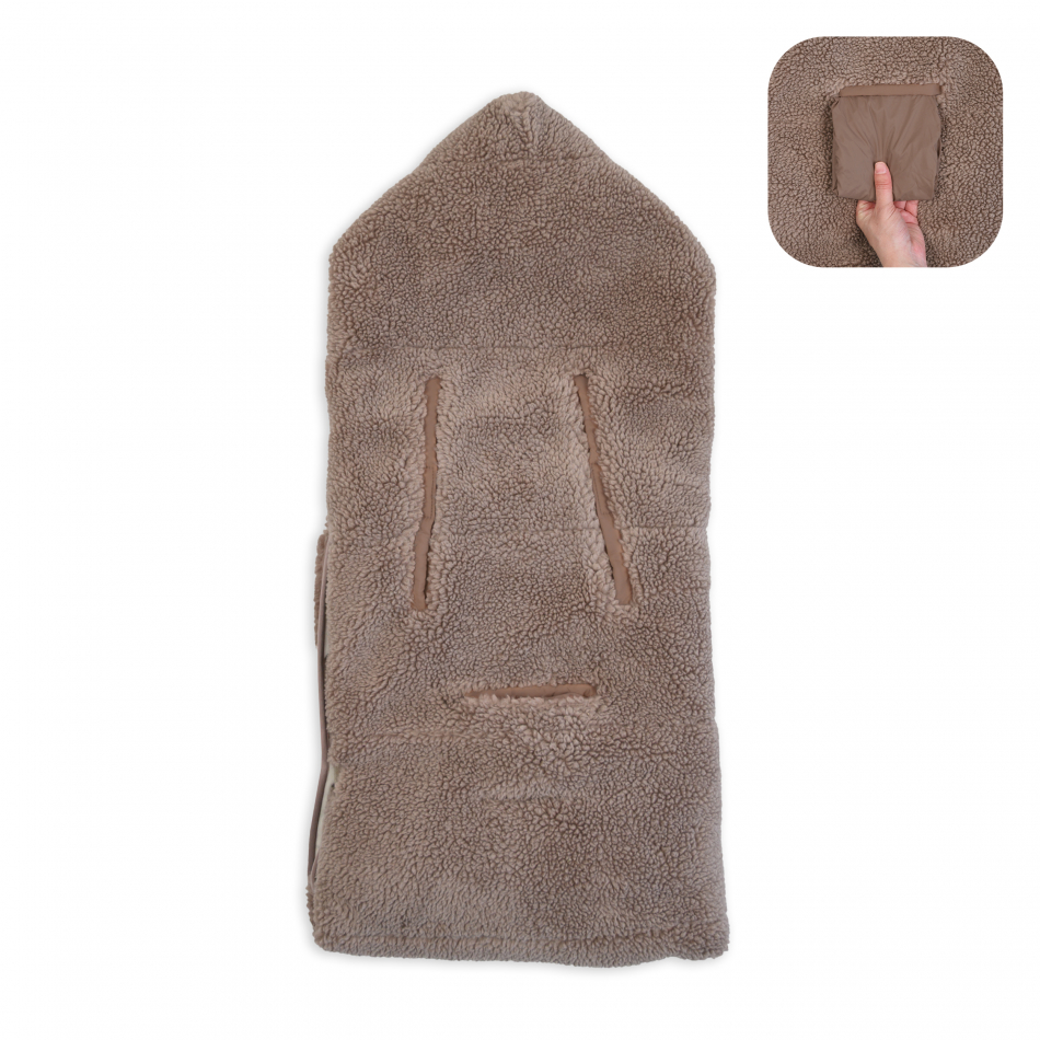 Now, with a touch of Innovation, we have developed a new foot section that allows your baby to use this wrap blanket teddy even longer. In addition, this wrap blanket has a hood to protect your baby from the cold.