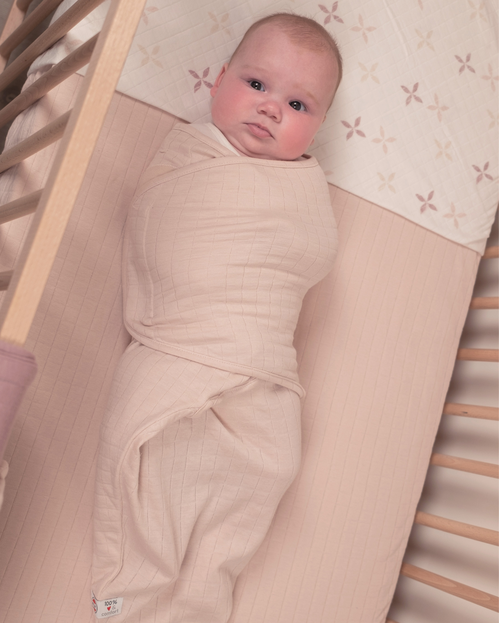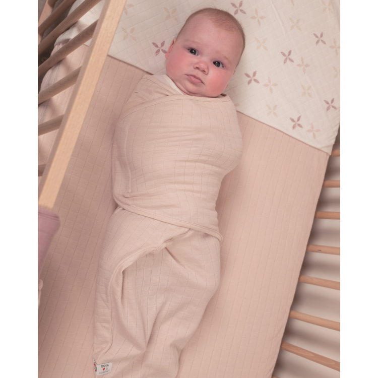 With the Lodger swaddle sleeping bag, you help your baby sleep peacefully. This swaddle wrap secures your restless baby in a way that prevents them from waving their arms in their sleep. Swaddling also recreates the snug and secure feeling of the womb. Thanks to its smart design, swaddling becomes much easier. Simply wrap your baby in the fabric, fasten it with Velcro, and your little one is safely and securely swaddled. With a TOG rating of 0.3 and made from 100% organic, breathable cotton, this swaddle sleeping bag is delightfully cool in summer and insulating yet comfortable on cooler days. Because the organic cotton is so pure, it stays in shape and remains soft, even after many washes.