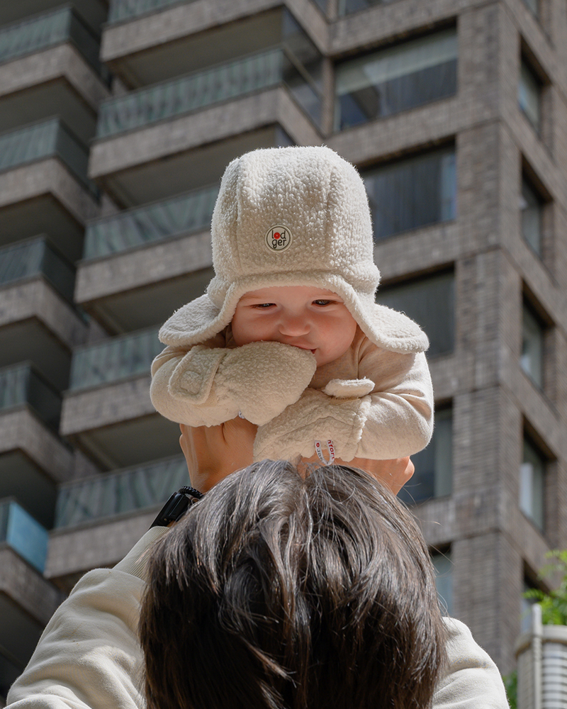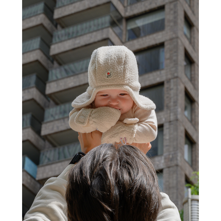 The soft Lodger newborn teddy hat keeps your baby’s head warm thanks to the well-fitted sides over the ears. The elastic part on the back of the newborn hat gives it a perfect fit over the head and in the neck of the baby. Our Teddy items are water-repellent, so your little one won't get wet in light rain.