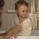 You can use the muslin swaddles to swaddle your baby, dry him off, protect him from the sun, feed him, and much more. These muslin swaddles are available as 2-packs in size 110x110 cm.