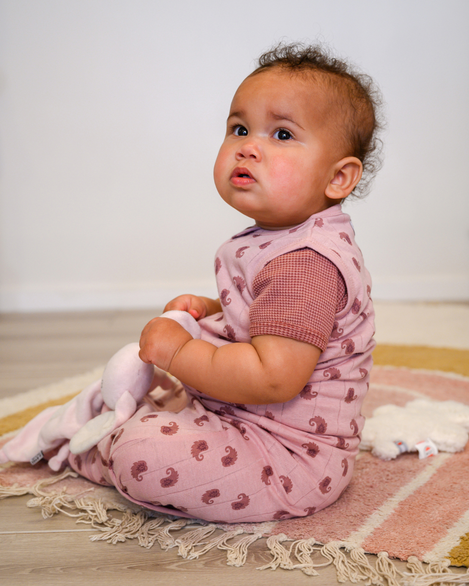 Une gigoteuse hydrophile au TOG de 0,5 est un véritable incontournable pour votre bébé pendant les mois d'été les plus chauds. Cette gigoteuse hydrophile est en 100% coton tricoté et a une valeur TOG de 0,5. Grâce au coton tricoté, la gigoteuse a une forme parfaite et le tissu est extensible. Nous estimons qu'il est important de pouvoir utiliser une gigoteuse en toute sécurité. La gigoteuse a donc le label de qualité 'confiance textile' Oeko-Tex. La gigoteuse hydrophile a une fermeture éclair jusqu'en dessous, ce qui facilite le changement du lange.