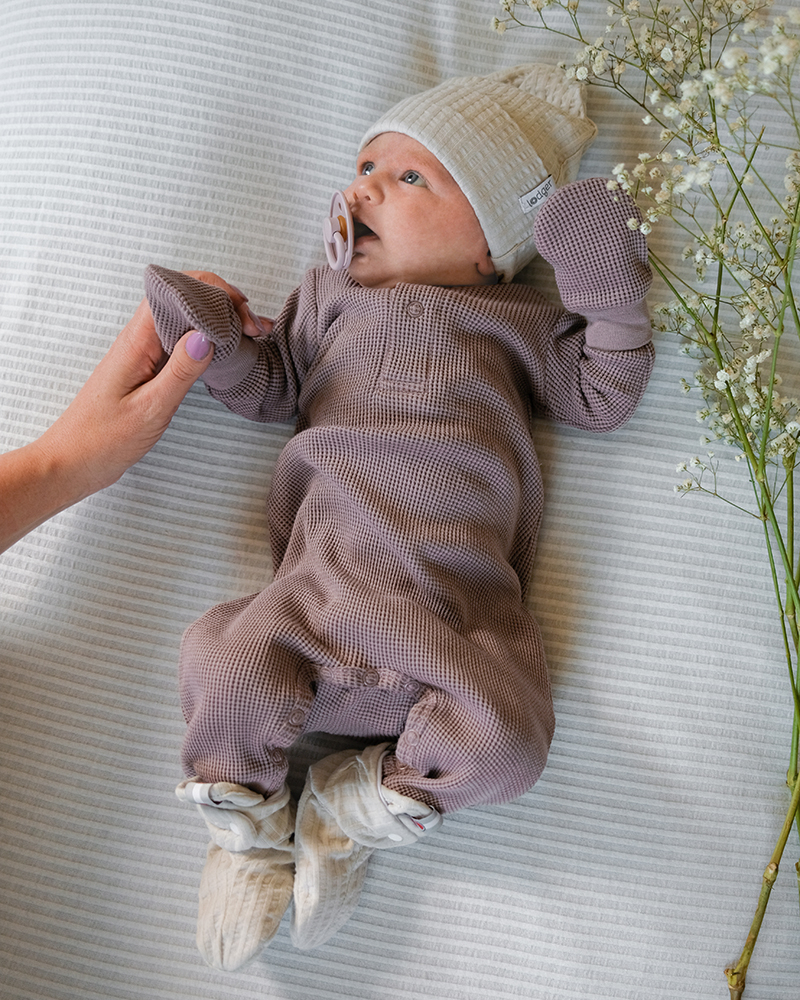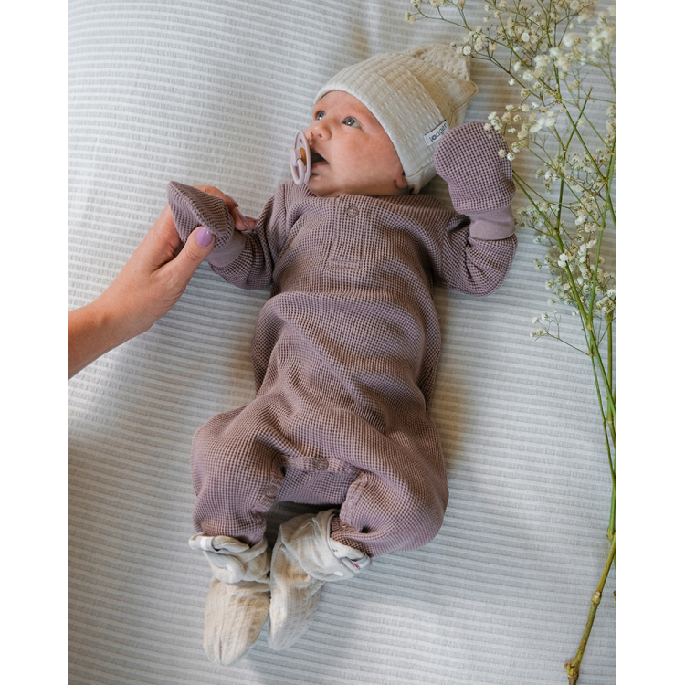 Onze Oeko-Tex® gecertificeerde boxpakjes voor baby's zijn gemaakt van gebreid hydrofiel katoen. Het gebreide katoen zorgt voor een elastische fit die goed aansluit. Gemak is van belang bij pasgeboren baby's, daarom bevatten onze boxpakjes drukknoopjes dat het verschonen van de luier nu nog makkelijker maakt.
