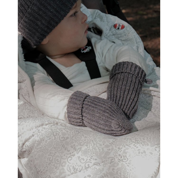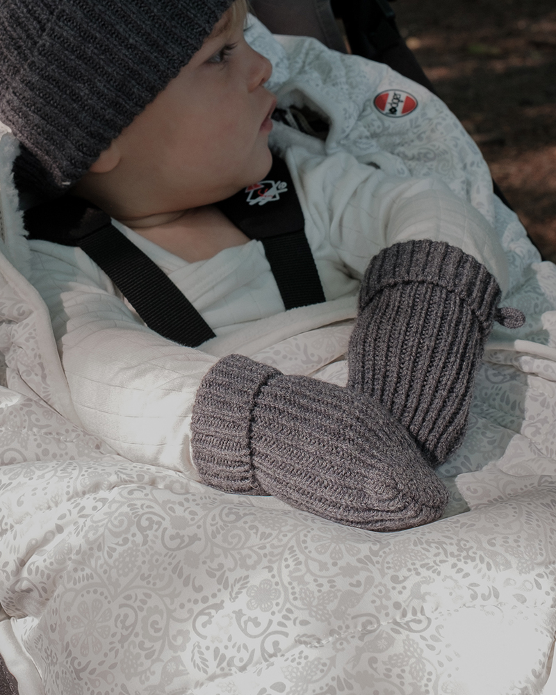 Voor een perfect setje combineer je de wollen wanten met de Merinowollen muts en slofjes.