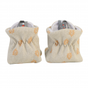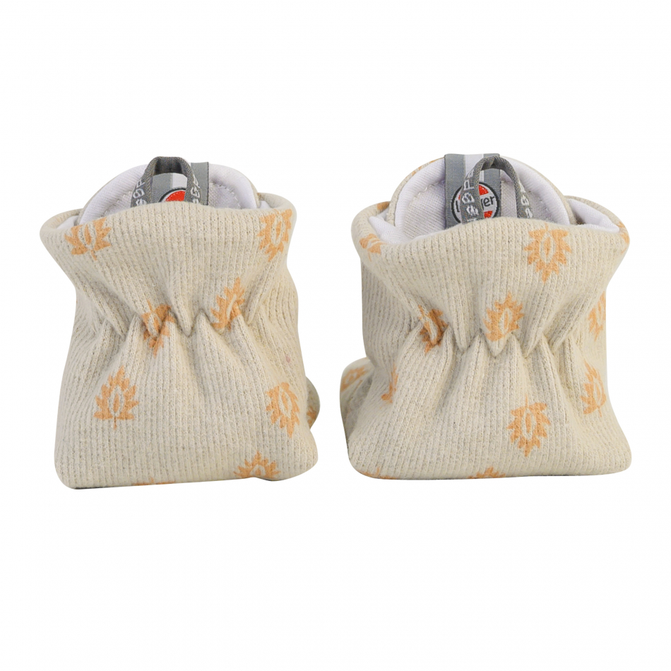 Deze babyslofjes zijn gemaakt van 100% ademend katoen met het keurmerk 'vertrouwen in textiel' Oeko-Tex. Door de drukknopen zijn de babysloffen gemakkelijk aan te trekken en blijven ze zitten aan het voetje. De grootste maat baby slofjes 6-12 M heeft een anti-slip zool voor het staan en de eerste stapjes.