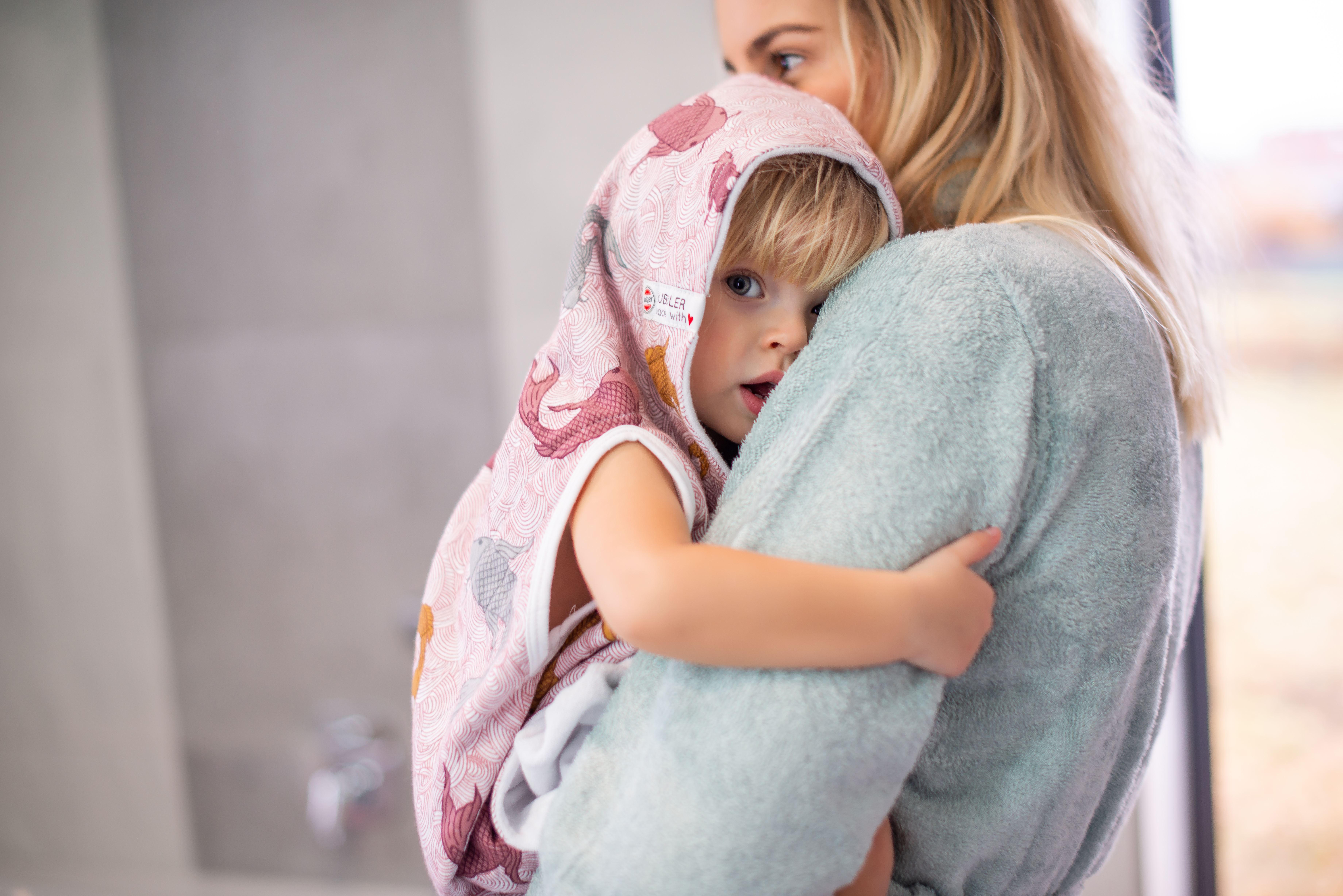 Houd je baby na het badderen warm met een zachte badcape. Kleed je baby vervolgens aan met een zachte romper. Nu is het tijd om te knuffelen! Kruip gezellig tegen elkaar op de bank of in bed. Geef je baby een zachte babyknuffel (eventueel eentje die naar jou ruikt) waar hij of zij extra mee kan knuffelen in zijn bedje.