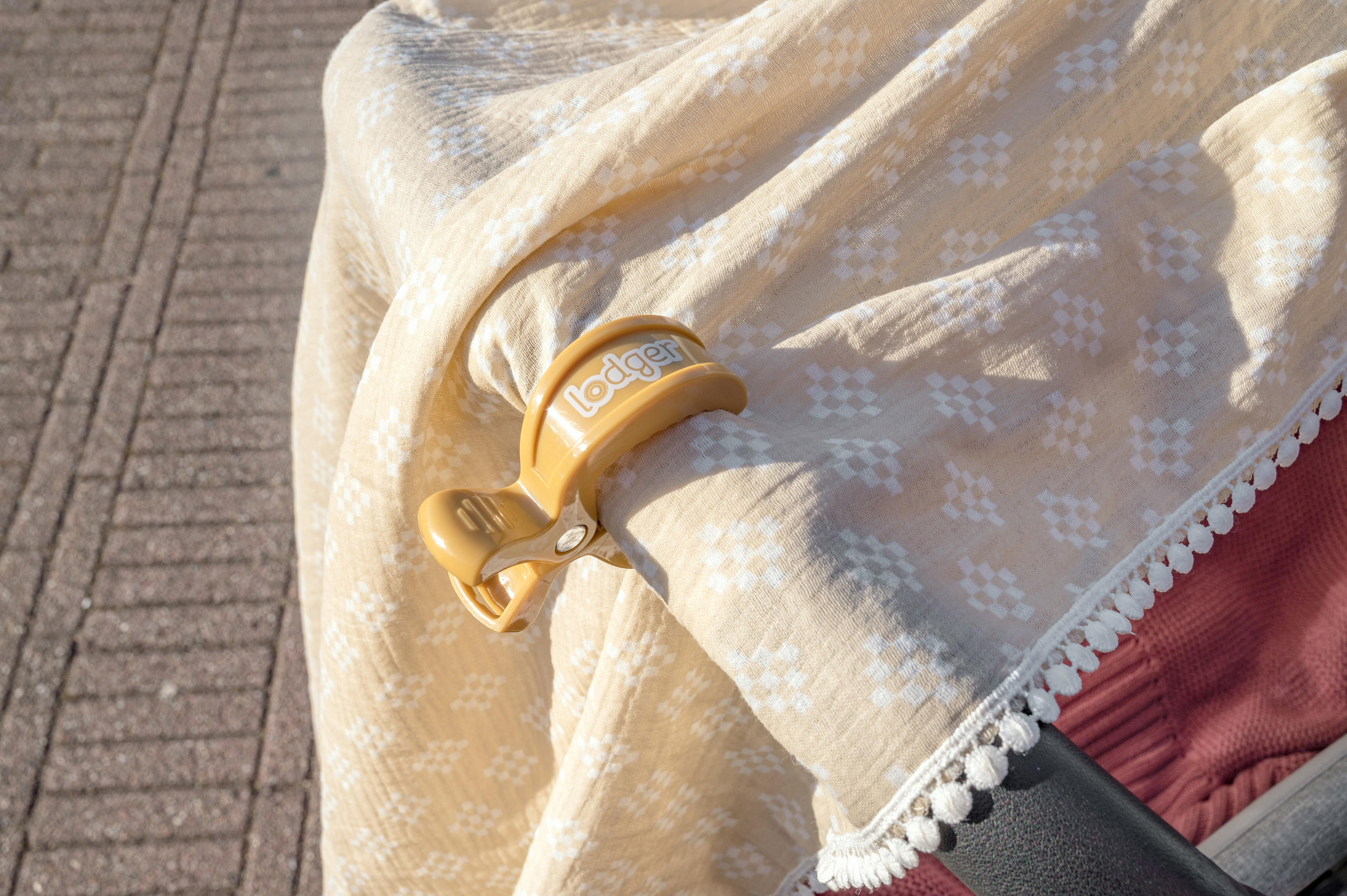 7. Bescherm je baby tijdens een slaapje in de wandelwagen tegen fel zonlicht door een hydrofiele doek losjes te bevestigen tussen de kap en het handvat van je kinderwagen. Gebruik hiervoor handige Swaddle Clips. Zorg er altijd voor dat je de wagenbak niet geheel afsluit en gebruik op zeer warme dagen een parasol in plaats van een doek om oververhitting te voorkomen. Smeer je kindje natuurlijk ook altijd in met zonnebrandcrème met UV-bescherming.