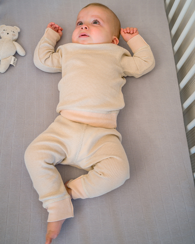 Kies een comfortabele pyjama voor baby's, dreumesen en peuters, gemaakt van 100% gebreid katoen. Het is belangrijk dat je kind comfortabel en veilig kan slapen. Kies daarom voor gebreid katoen dat het materiaal zacht en elastisch maakt. Daarnaast bevatten onze pyjama sets het keurmerk 'vertrouwen in textiel' van Oeko-Tex®. Hierdoor zijn de pyjama's veilig in gebruik.