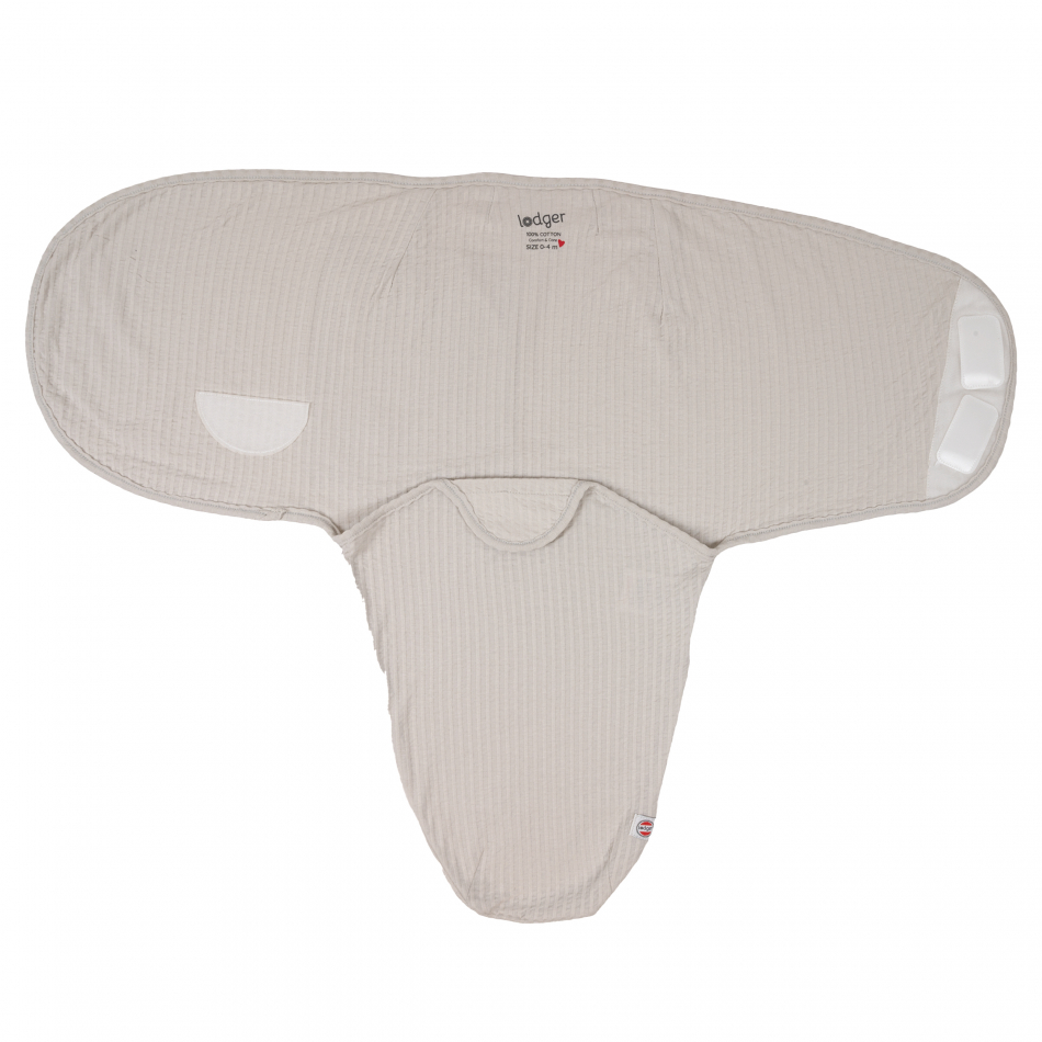 De Lodger Bundler Seersucker inbakerslaapzak met 0.3 TOG is een heerlijk zachte en luchtige inbakerdoek. Je baby slaapt rustig als je hem inbakert, want hij slaat zich niet meer met zijn armpjes wakker. Bovendien voelt hij zich ingebakerd bijna net zo veilig en geborgen als in de baarmoeder. Dankzij het enkellaagse rekbare katoen circuleert de lucht goed door de inbakerslaapzak, waardoor je baby het dus niet snel te warm zal hebben. Het slimme ontwerp maakt inbakeren makkelijk, want je wikkelt de inbakerslaapzak om je baby heen en zet het vast met klittenband. De band is gemaakt van dubbellaags katoen en dus extra sterk. Het zachte katoen blijft zacht en soepel, ook na veel wassen.
