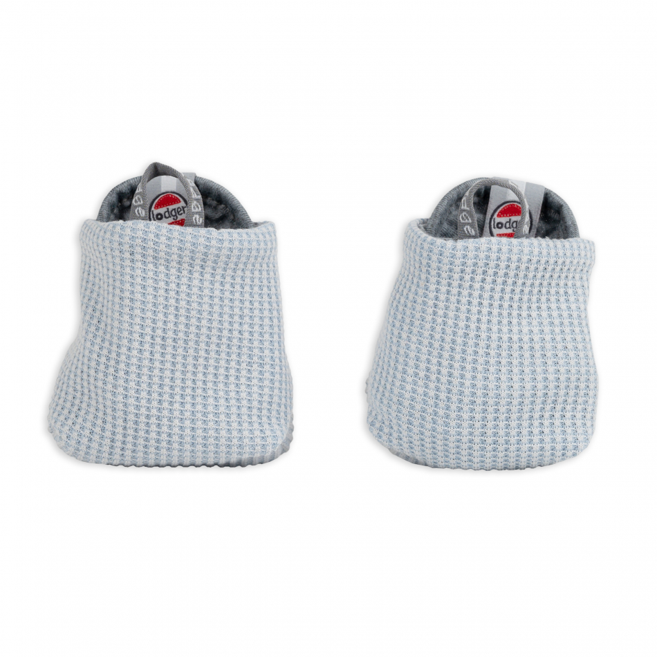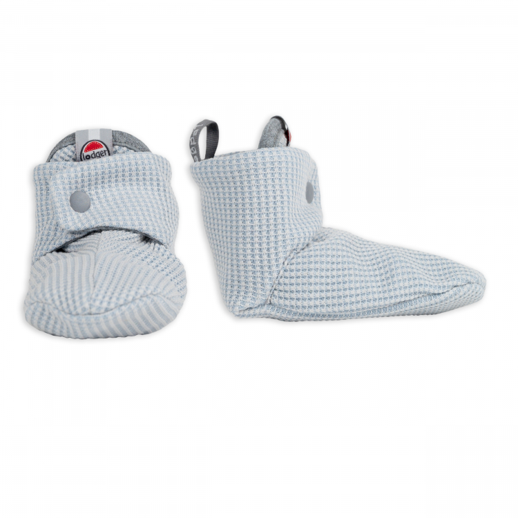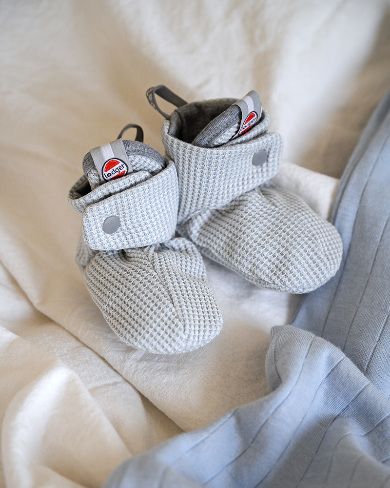 Ik heb de witte solid-versie katoenen slofjes, erg fijn! Zeer makkelijk aan te trekken, door de grote flap kan je het helemaal open trekken. Ook verstelbaar door twee drukknopen, ideaal! Ik heb een erg beweeglijke baby, altijd te trappelen met haar voetjes en zich afzetten (ze is nog maar 11 weken oud), maar haar voetjes blijven in ieder geval warm! :)