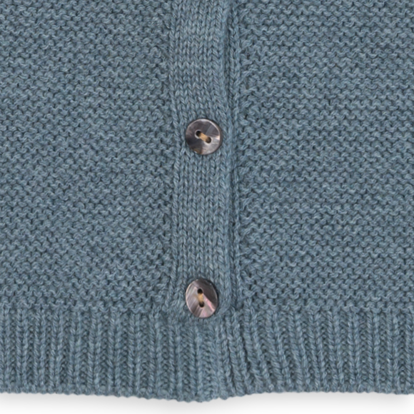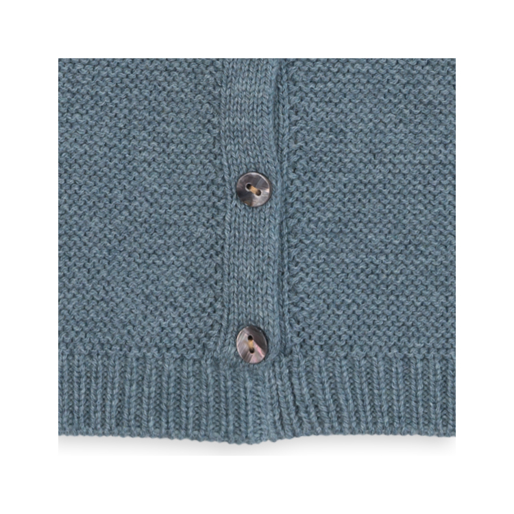 De fijne gebreide structuur en de praktische knoopsluiting maken het vestje makkelijk aan en uit te trekken. De raglanmouwen zorgen voor optimale bewegingsvrijheid