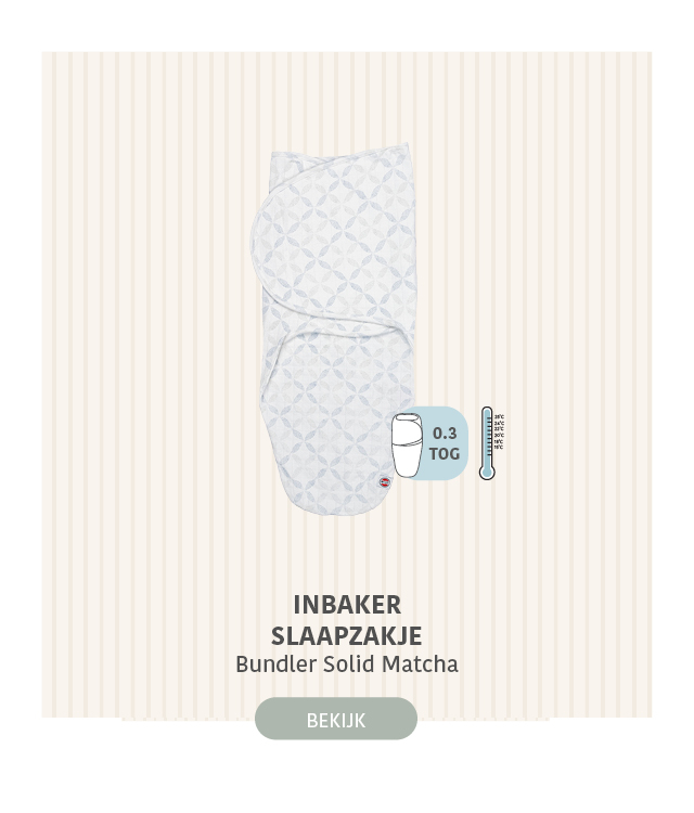 Nieuw in onze collectie is de inbakerdoek Matcha van 100% biologisch katoen en met een leuk printje. Met deze kant-en-klare inbakerdoek kun jij jouw kleintje eenvoudig inbakeren. Met een doek inbakeren is heel simpel: je legt je kleintje in de doek met de beentjes in het zakje en vouwt de ene flap over de andere. Dankzij de handige klittenbandsluiting blijft het goed zitten en slaapt je kindje heerlijk. Probeer het nu zelf!
