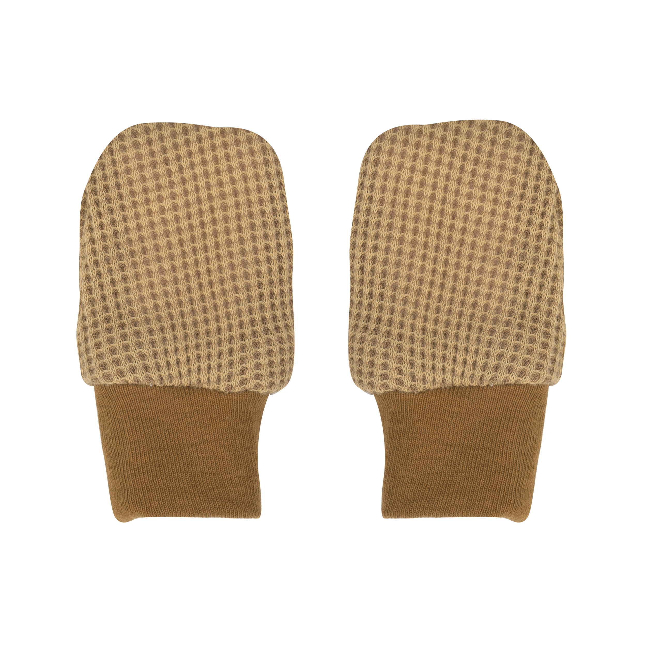Krabwantjes van katoen met Ciumbelle wafelstructuur. De wantjes zijn speciaal ontworpen voor pasgeboren baby's om te voorkomen dat zij zichzelf tijdens het slapen krabben met hun scherpe nageltjes en daarvan wakker worden. De anti-krab wantjes zijn gevoerd. Aantrekken van de wantjes gaat erg gemakkelijk doordat het boord is gemaakt van stretch ribstof.