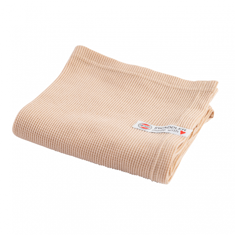 Multifunctionele hydrofiele doek van gebreid katoen met wafelpatroon. Door de open gebreide structuur zijn de swaddles zeer licht, luchtig, absorberend en drogen ze snel. Een onmisbaar item in de babyuitzet.