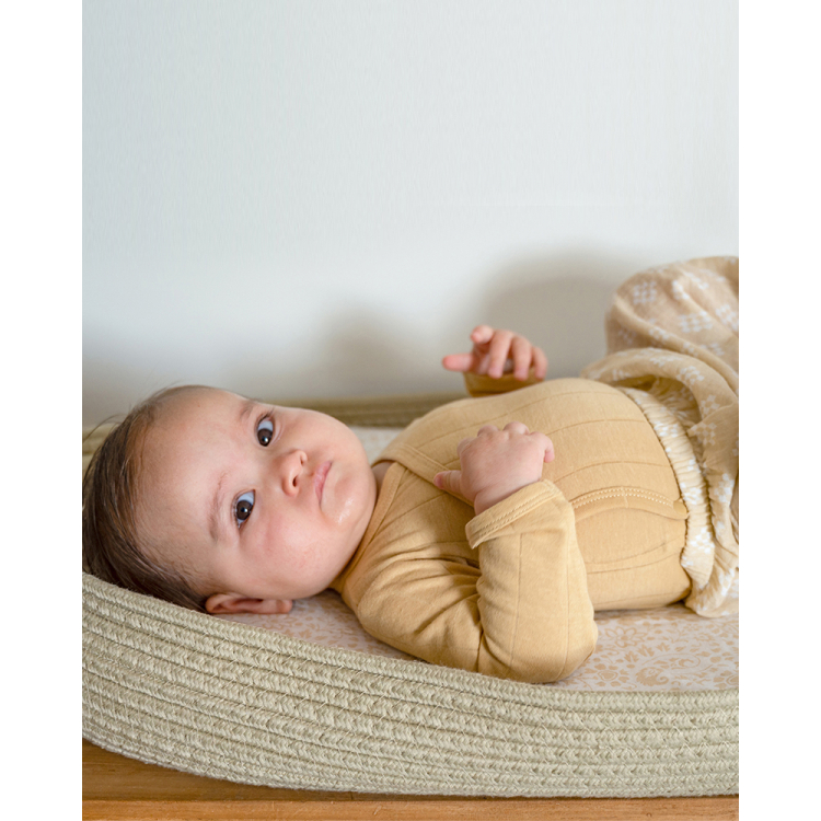 Kies altijd voor rompertjes met lange mouwen die gemaakt zijn van 100% gebreid katoen met Oeko-Tex keurmerk. Door het gebreide katoen zijn de rompertjes elastisch en hebben ze een goed aansluitende pasvorm. Baby's vinden het niet altijd fijn om aangekleed te worden en daarom maakt de handige overslag met drukknoopjes het omkleden veel makkelijker.