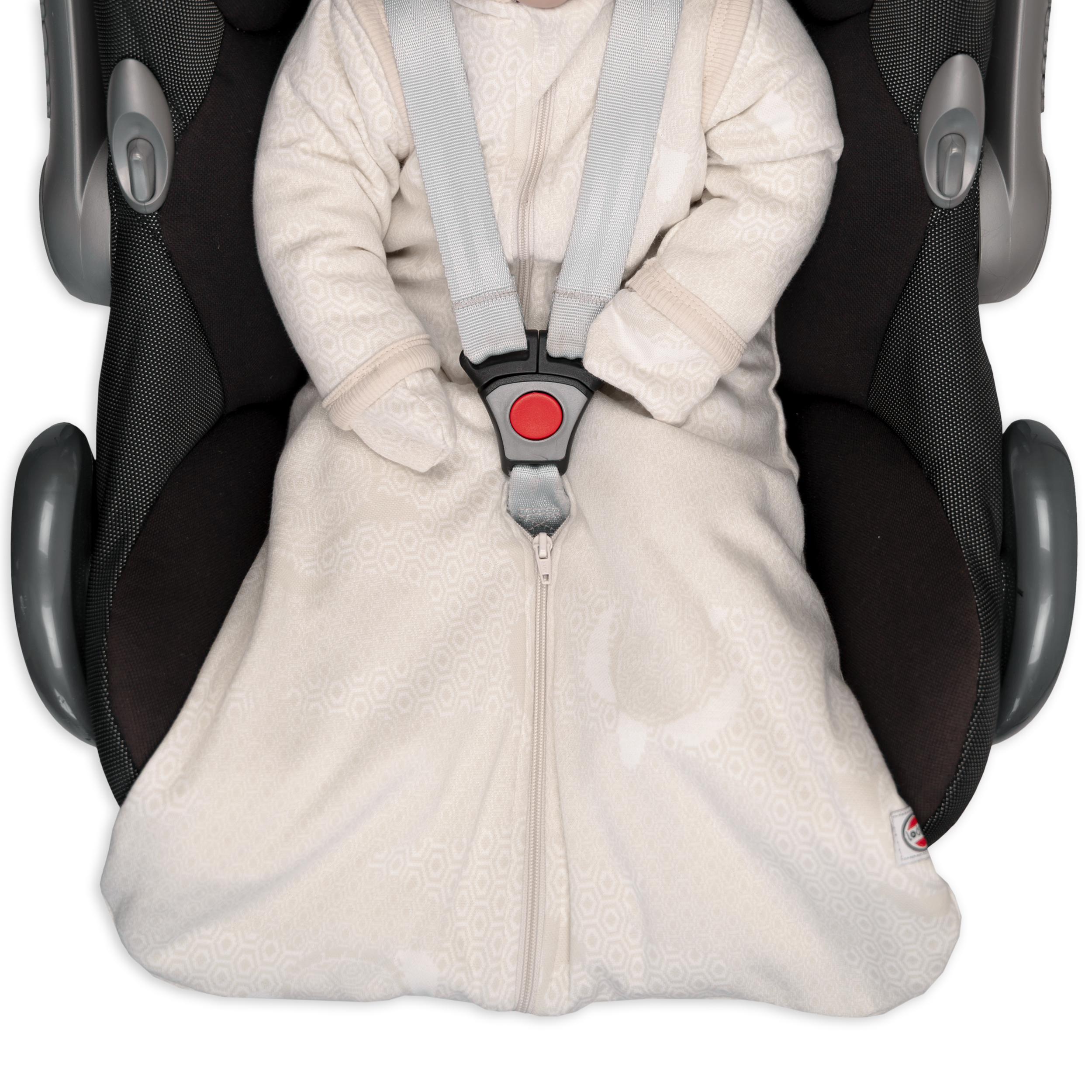 The smart zipper with three fasteners runs all the way to the back. This allows you to easily change your baby without waking them up. In addition, this baby sleeping bag is suitable for use in a car seat or Maxi-Cosi. Ideal for on the go: put your child straight from the car into bed without having to change their clothes.