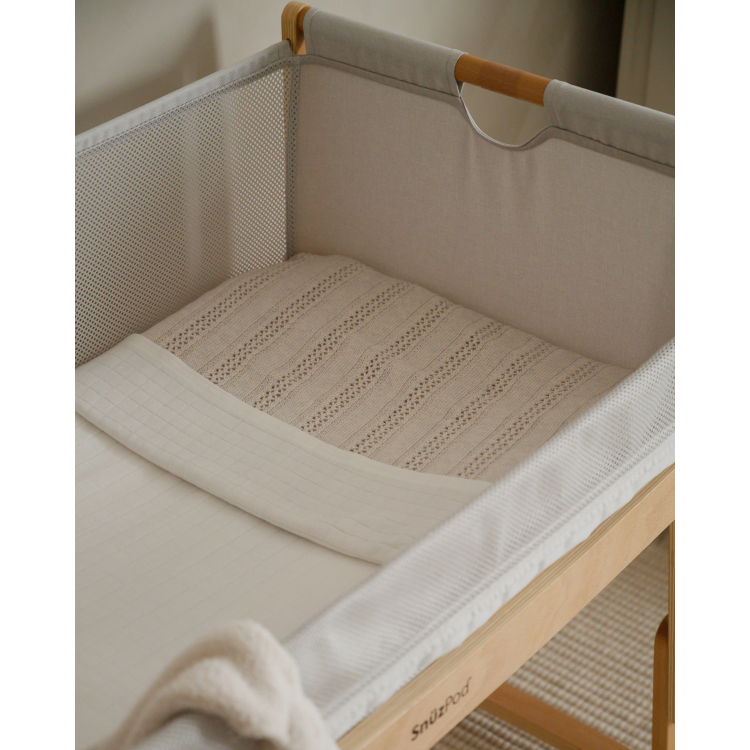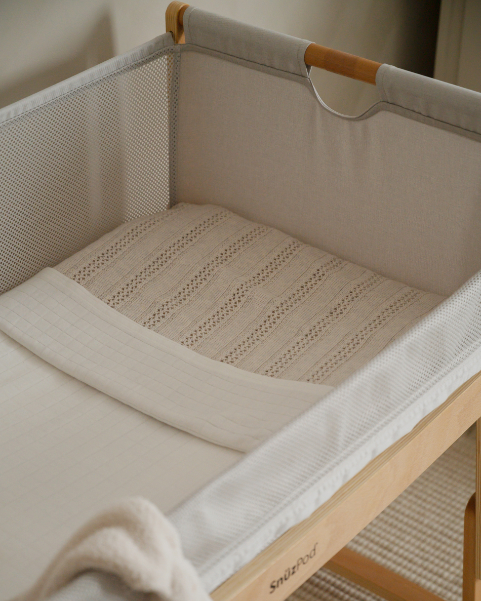 Soft, breathable, and timeless – an essential blanket for a warm and secure start.