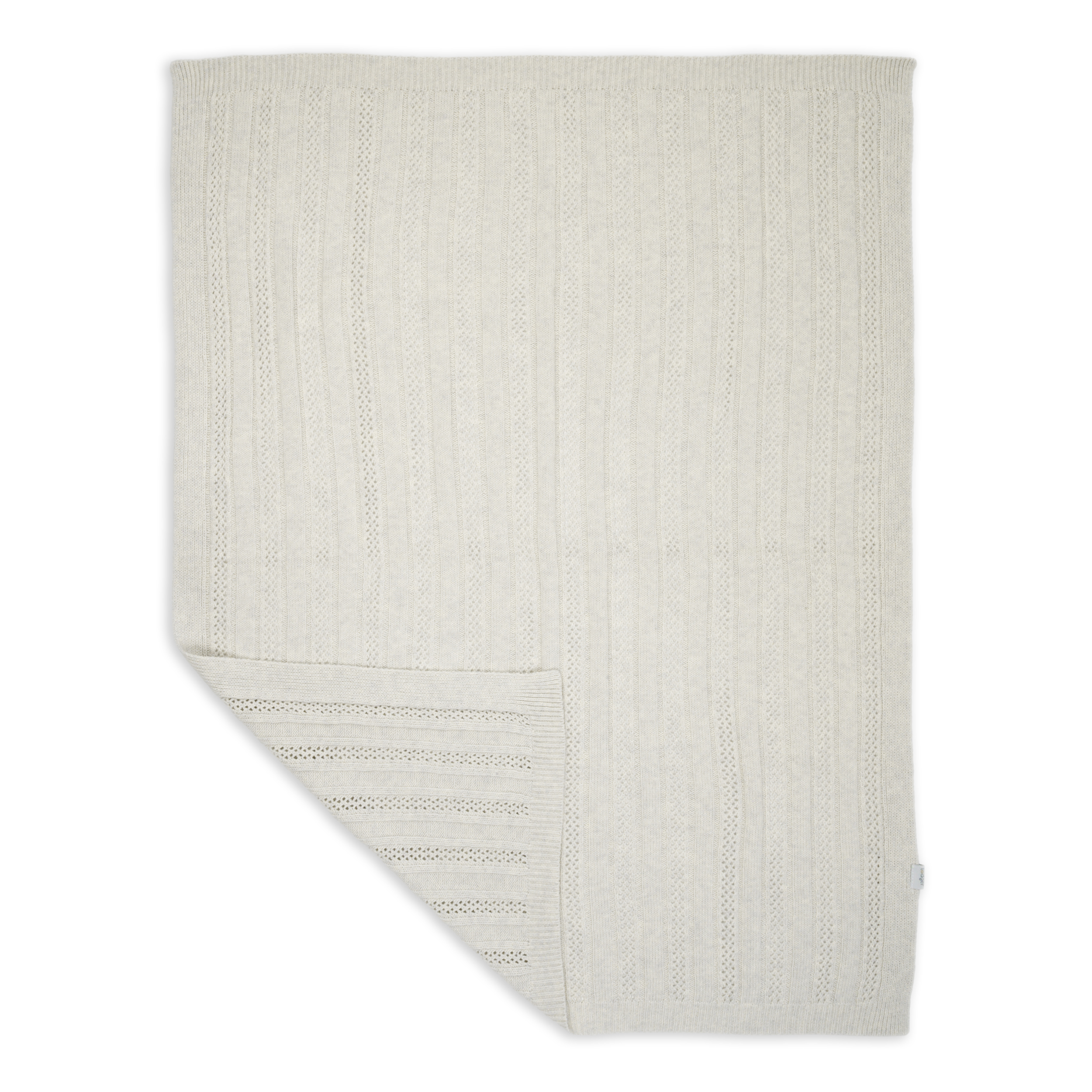This delicate knitted baby blanket is specially designed for the tiniest ones. The refined pointelle pattern gives the blanket a soft, elegant look that fits beautifully in any nursery.